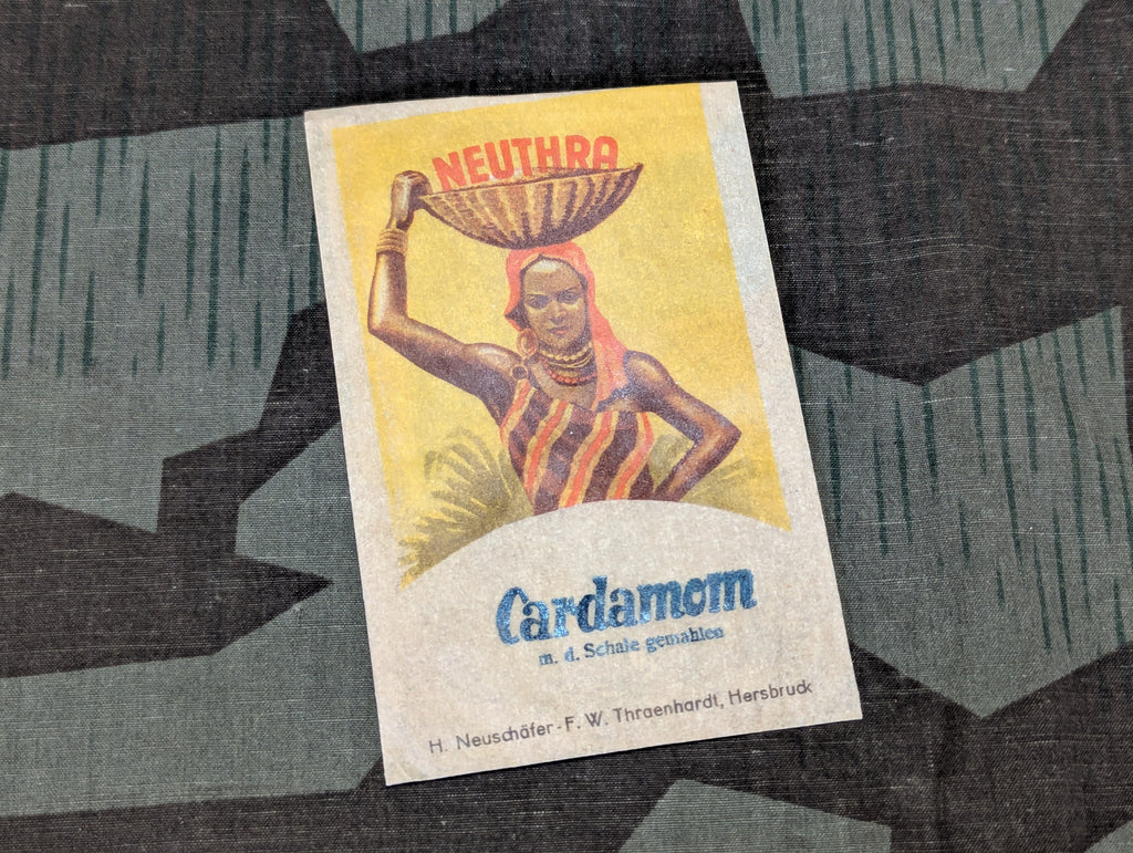 Original packet of Cardamom. The price is for one packet. Yes, the spice is still inside (although not much). All packets are in similar condition with some discoloration. This was a generic Neuthra brand spice package which was then stamped based on the contents, so on some, the word "Cardamom" might be crooked.