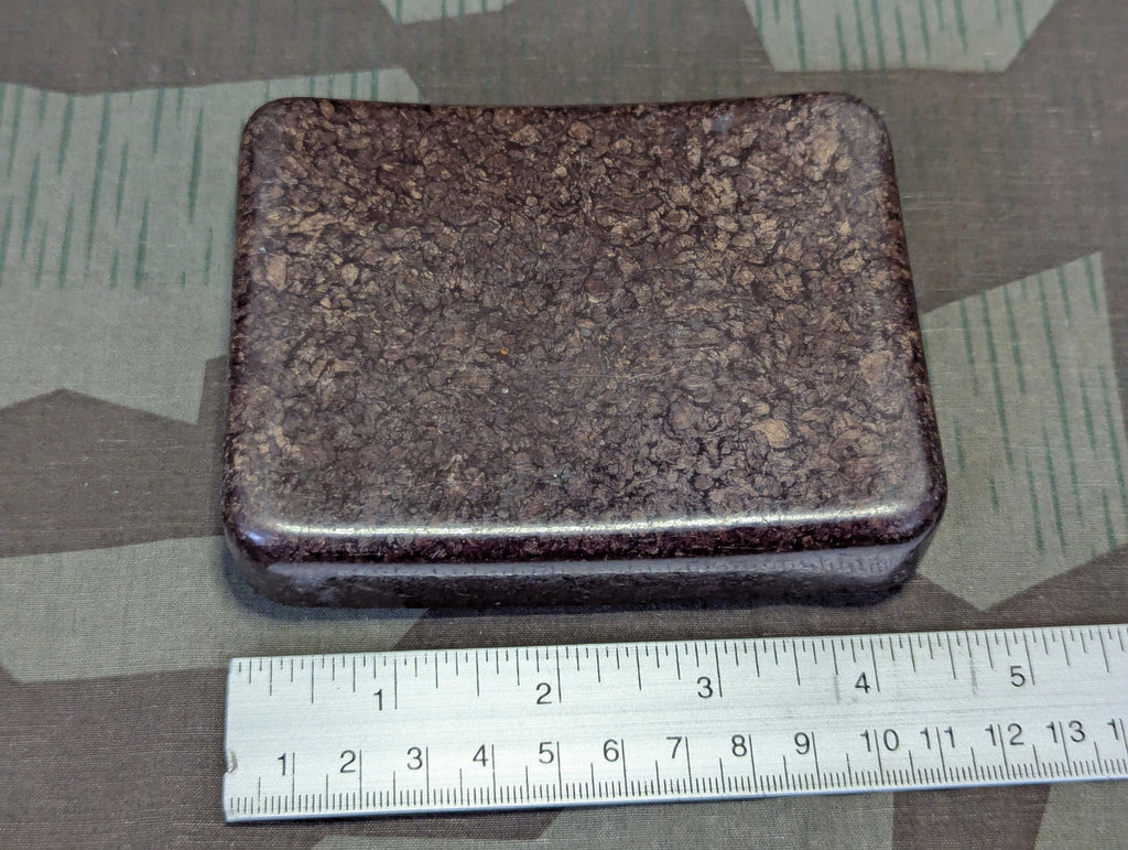 Period German Alor Tobacco or cigarette case. It shows light wear and scratches, but is in good condition. It is rather beefy for Bakelite so it should be durable. It has a very nice pebbled pattern on the lid. It is rather dirty inside. The lid closes but doesn't latch very hard, so it opens pretty easily.