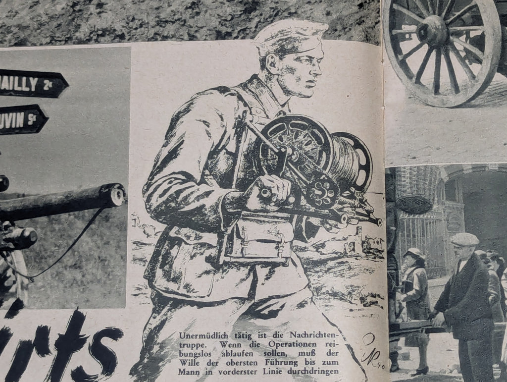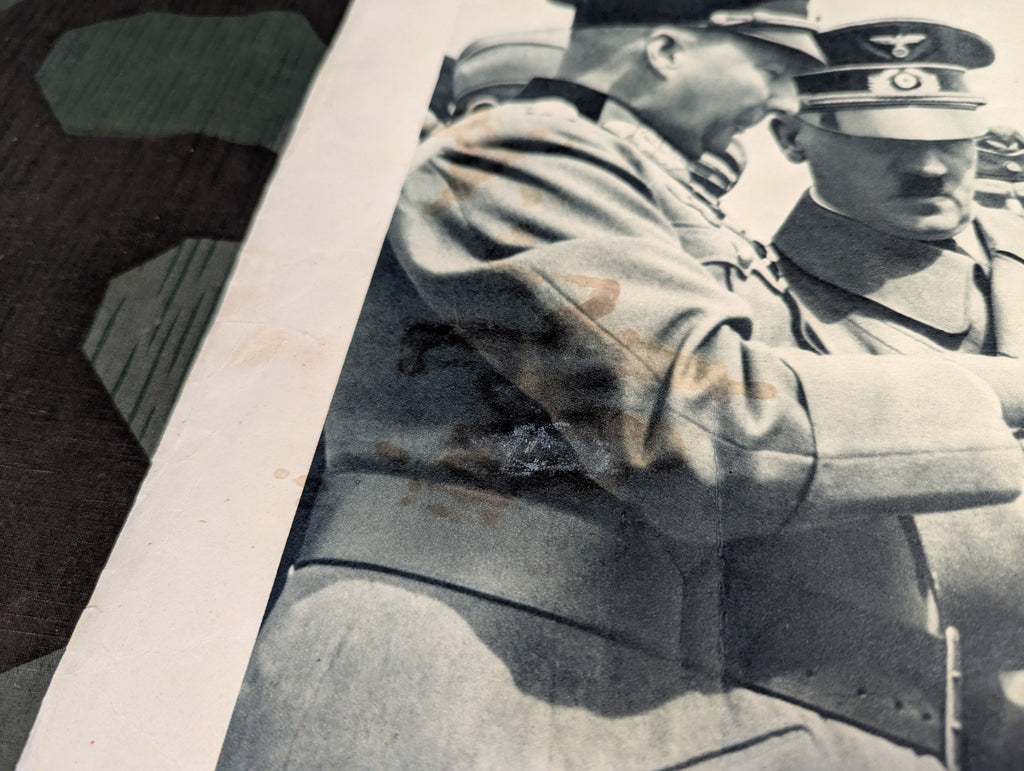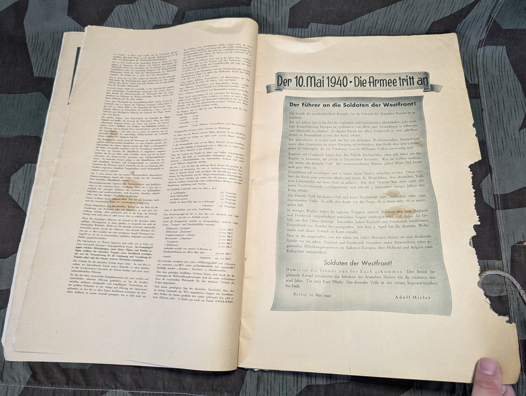 Original special illustrated edition of Der Stoßtrüpp which was a Wehrmacht newspaper. There is some minor staining and some damage to some of the pages. There are a few fold out maps. I have a few issues of Der Stoßtrüpp and it was normally just a fairly normal newspaper style publication, so it is interesting to see a special edition in large book form. It is basically pictures and illustrations from front to back covering the Invasion of France.