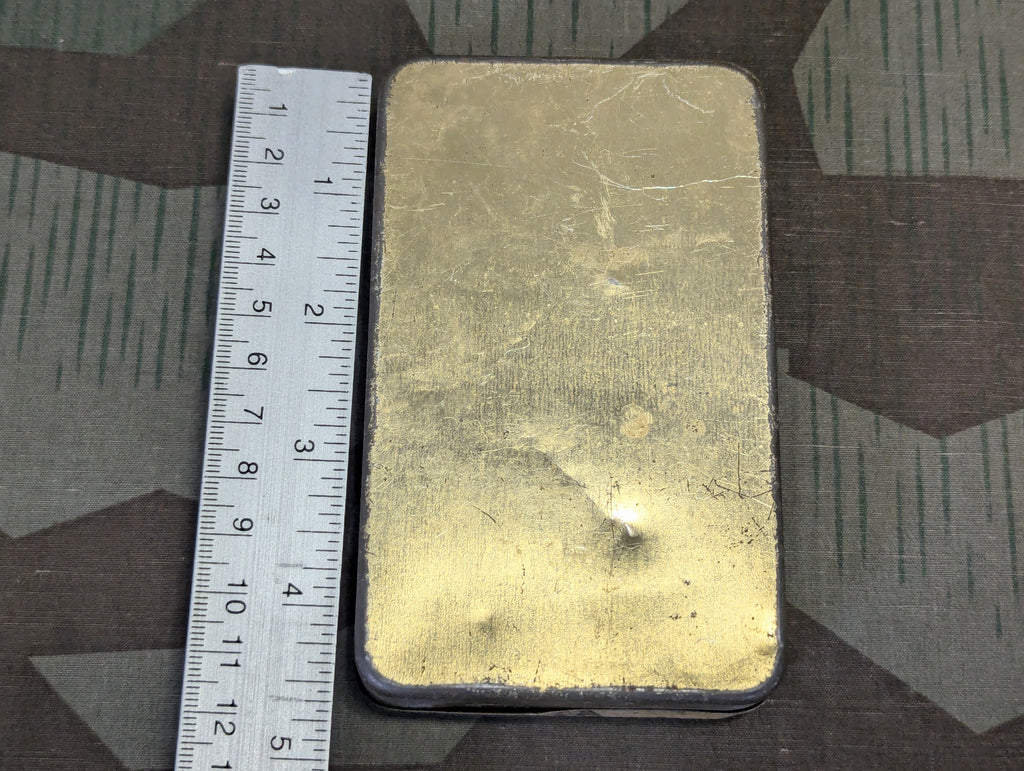 Late 1920s / early 1930s Dieterle Stumpen tin. Stumpen loosely translates to stogies or cigar. The tin has a neat art deco pattern on the front. Decent condition with some wear and minor dents.