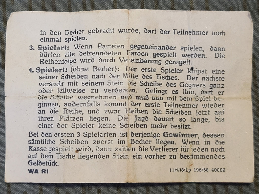 The Knips-Spiel game itself is actually older and dates back to the late 1800s. The colorful plastic discs do begin to appear in the game set in the 1930s, so despite looking very post war, they are actually quite similar to what you might see HJ kids playing with. This seems to have been a fairly common game as I have come across a lot of them over the years. I had always written it off as post war and it wasn't until I happened to see a prewar set with dateable markings that I looked into it more.