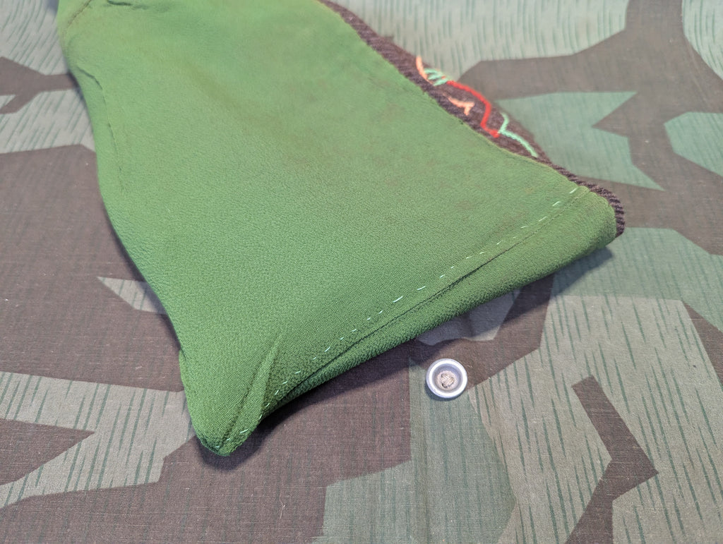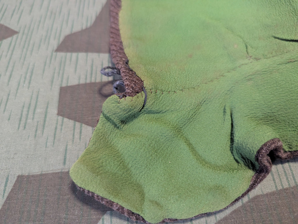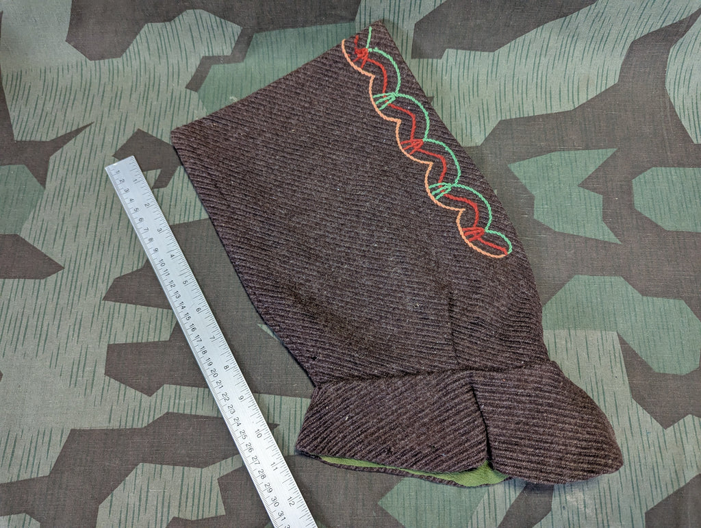 Vintage 1930s / 1940s German brown wool hood with pink stitching. Green crape lining. Two buttons at the neck. Cute winter hat. Overall good condition with light wear. One tiny moth hole. This might look like a bit of a statement but these actually do appear is quite a few period photos.