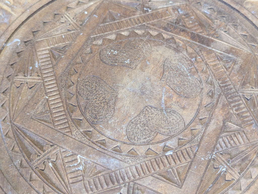 Nice, slightly dirty, wood souvenir plate from Berchtesgaden. Probably pre war although hand carved wood items can be difficult to date. The style of the carving seems older, probably even earlier than the 1930's. I am sure this would look very nice cleaned up.