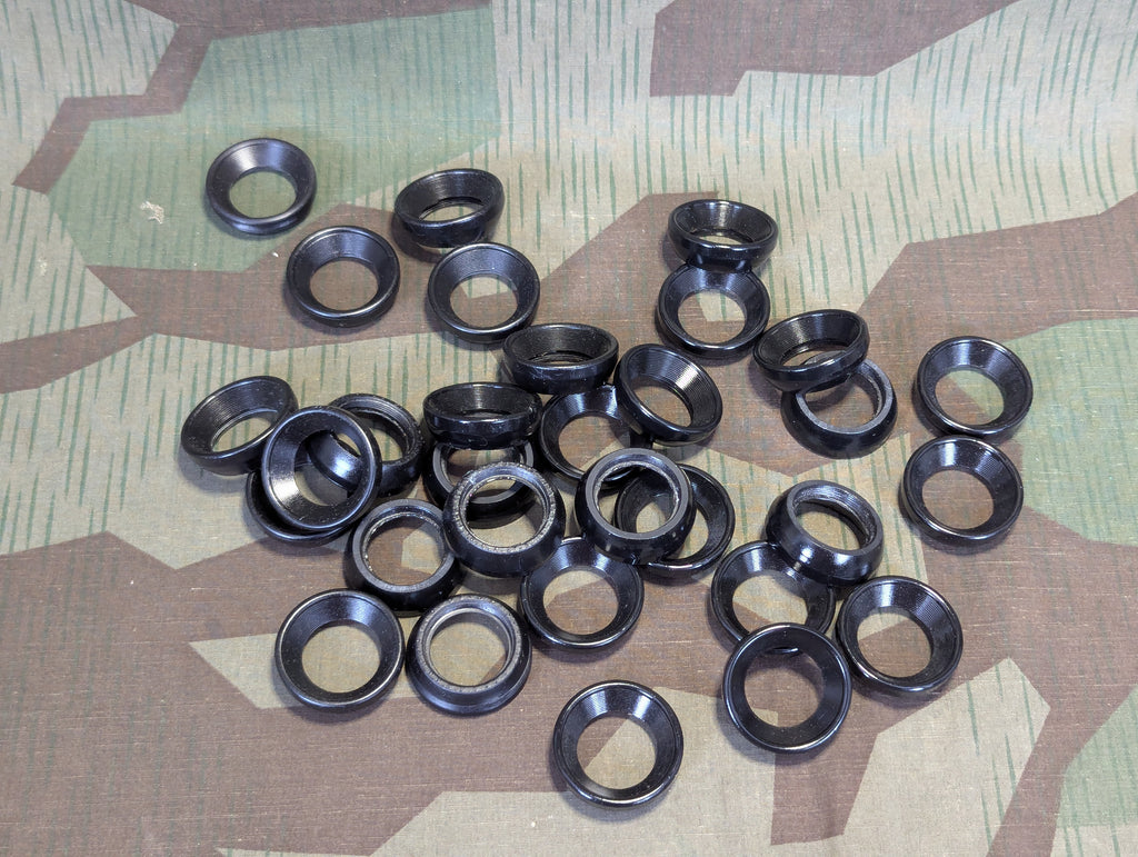Large lot of "factory seconds" reproduction 3D printed 6X30 German binocular eyepieces. Some are finished, some are unfinished. This batch turned out a little funky and sometimes the threads are loose. They are still usable in most cases, but the threads are pretty loose, so you might have to do something to shim it out a bit. I do not know how many there are or if all are defective; I tested a few and just rejected the lot.