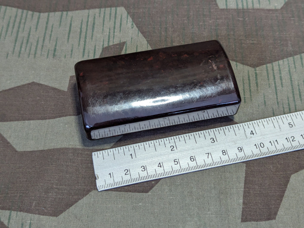 Period German Bakelite Lotzbeck schnupftabak container in good condition. Its actually fairly clean, just a little schmutz around the details of the logo on the lid.