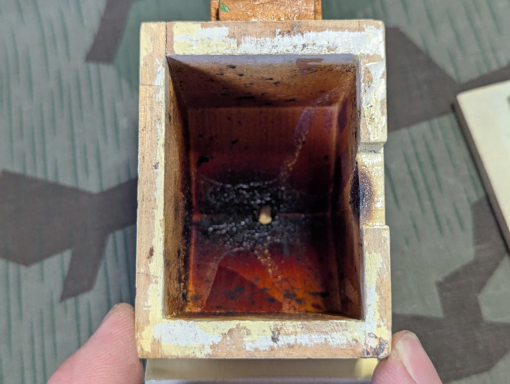 Räuchermännchen are a very old German knick-knack tradition that dates back to around the mid 1800's. They originated in the Erzgebirge, but have spread throughout Germany and are now a staple of German Christmas markets. These were made in the same region where many WHW items were produced. This region was known for many crafts, mostly made from wood. They are essentially a kitschy incense burner, with the smoke coming out his mouth. Never compete with the Germans for cute doo-dads. All of the energy they save on humor goes into this field.