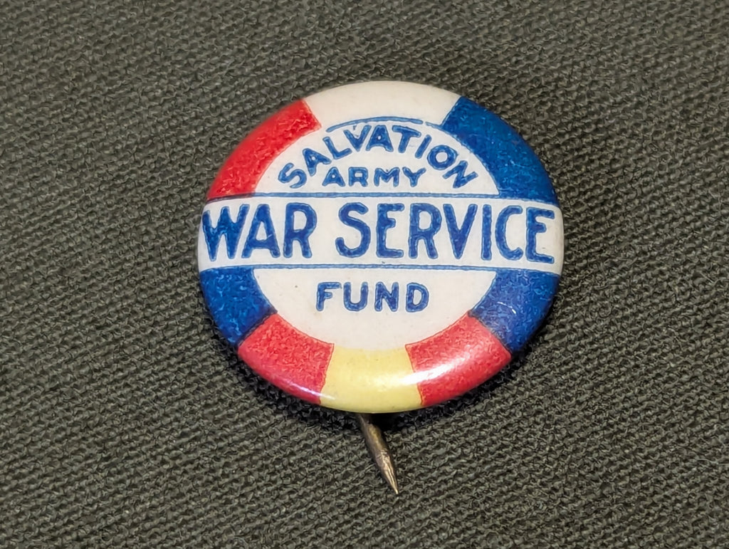 Original, probably WWI, very small Salvation Army war service fund pin. In good condition. Made by the Irwin-Hodson Company.