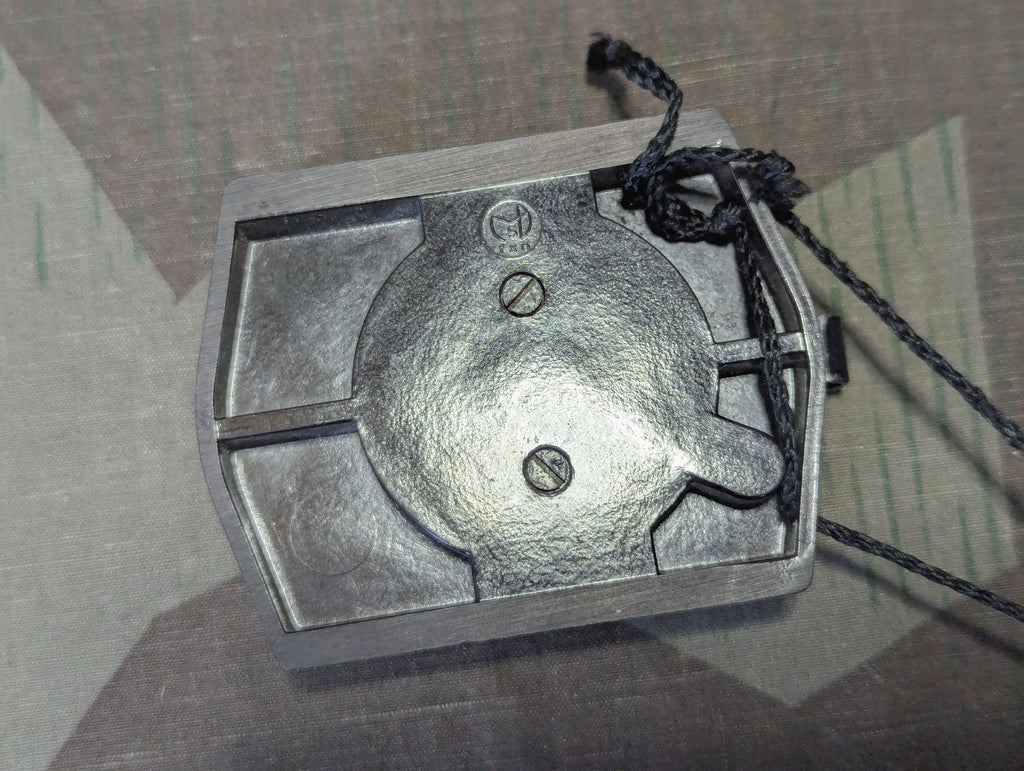 Very nice original German marschkompass with cord. It seems to be in good working order and does point north. Although many different compasses were used by the Wehrmacht, this is one of the better styles. Marked fxn. Light general wear.