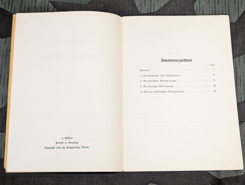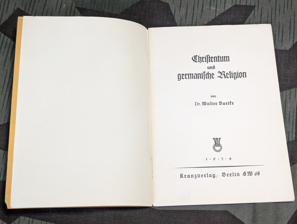 Original Christentum und Germanische Religion 1934 book about Christianity and "German" Religion. Its discolored and stained.