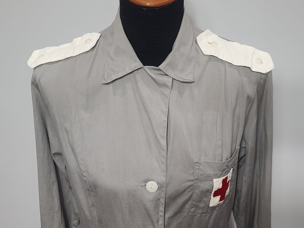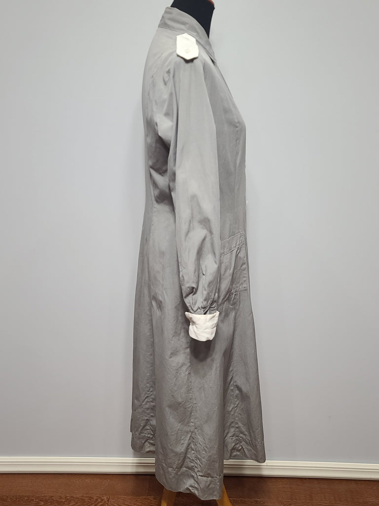 Original WWII American Red Cross "gray lady" uniform dress. This is the indoor uniform of the Hospital and Recreation Corps.