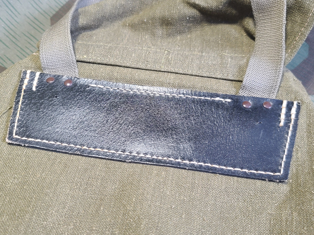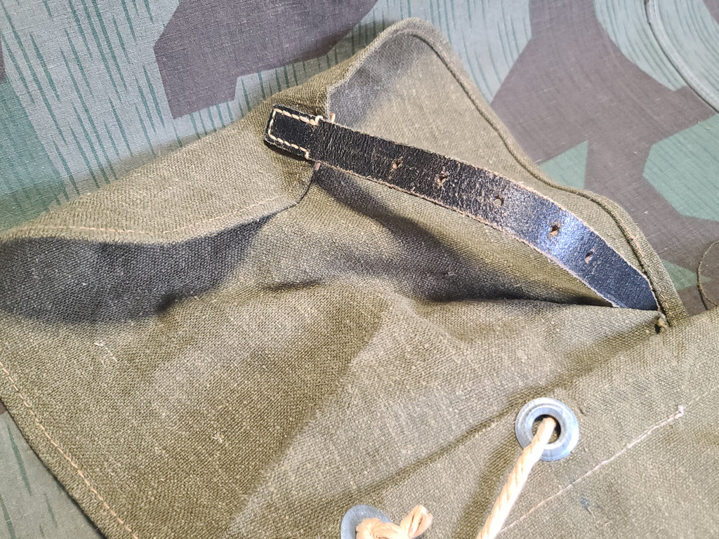Original M44 stürmgepack assault back pack, produced as a rucksack rather than to be attached to the Y-straps. The condition is very nice, basically unissued with one exception, the leather equipment straps that would have been used to hold the rolled up zelt have been removed.
