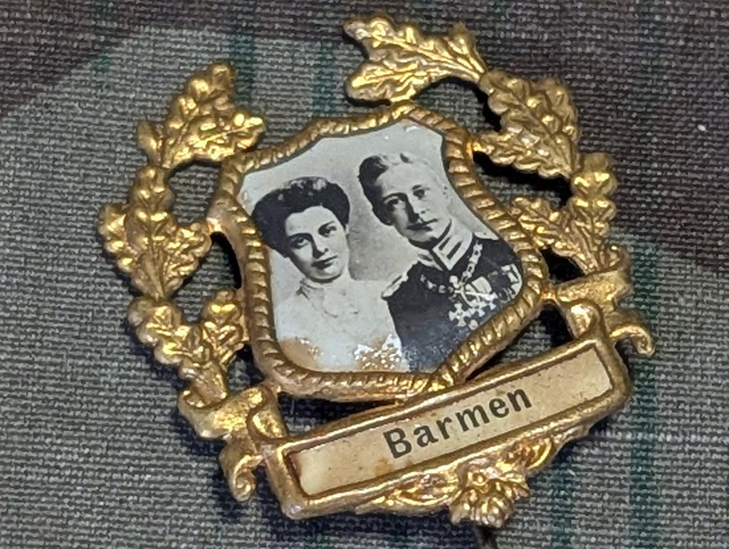 Stick pin featuring Prince Wilhelm of Prussia and his wife Princess Cecilie of Mecklenburg-Schwerin (the heirs to the throne had the Kaiser not abdicated and the parents of Louis Ferdinand). This pin is probably from their wedding in 1905. There is light rust and some discoloration.