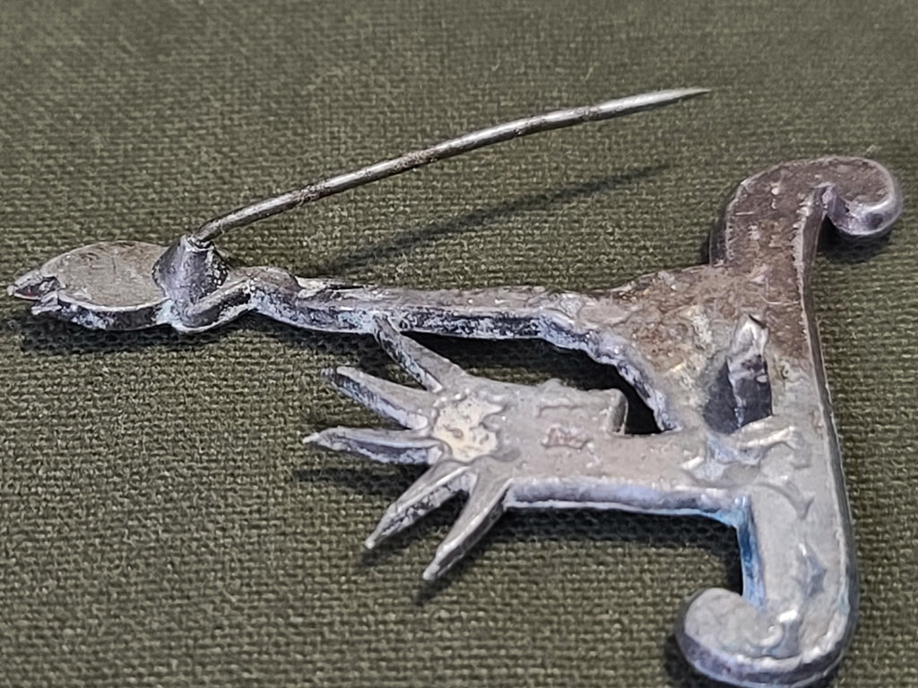 Vintage WWII Remember Pearl Harbor pin with the Statue of Liberty. Unique piece. The red white and blue colors around the Remember Pearl Harbor writing have faded a bit. and The red on the torch has rubbed off a little. Some wear on the pin itself.