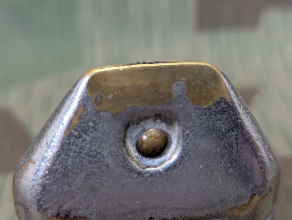 Original German DRGM marked tailor's tool for making powdered chalk lines on fabric. It has a reservoir for powdered chalk and a toothed wheel for dispensing it. It seems like it would be in working order. Not much to go wrong here.