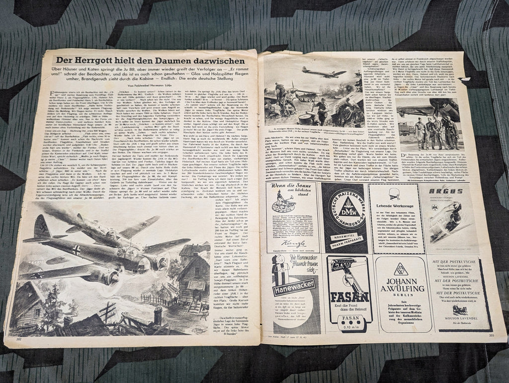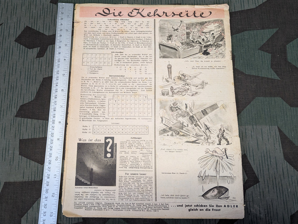 Original Der Adler magazine from 17 August 1943. In German. In good condition. Nice ads and good pictures as always. May ship slightly rolled.