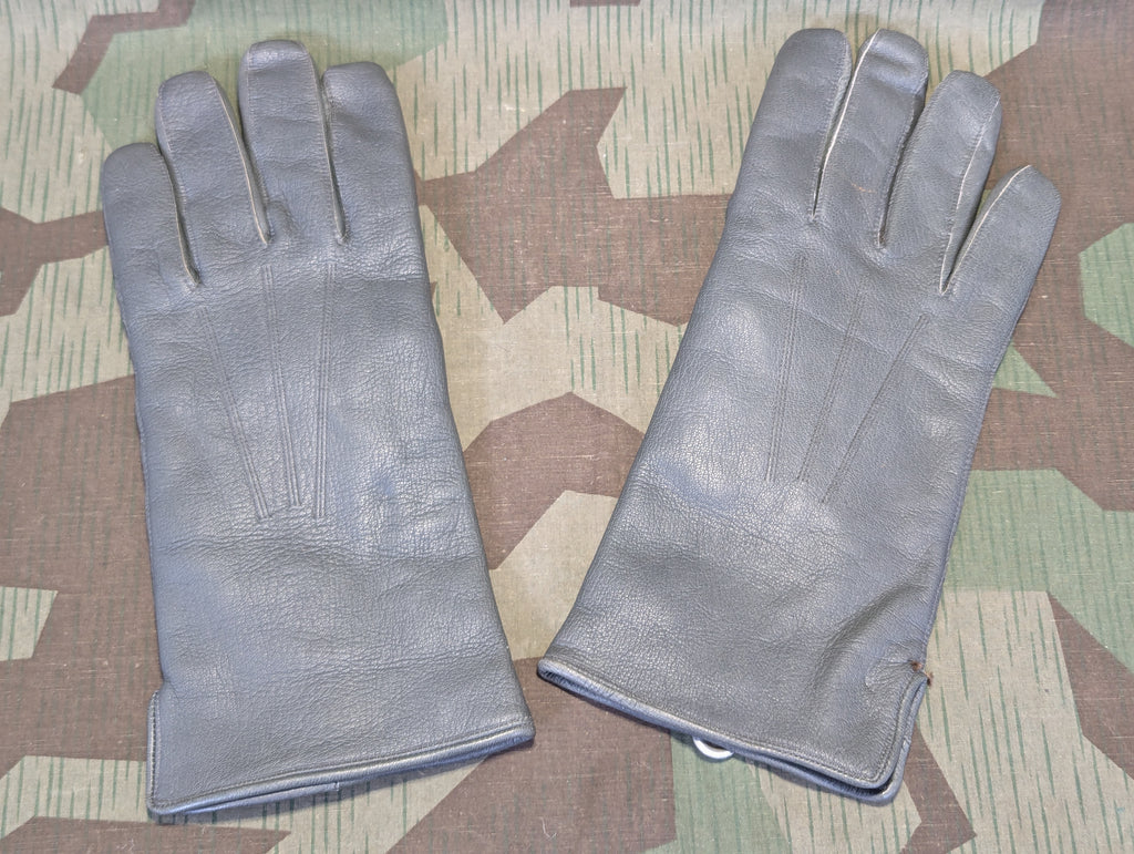 Appropriate German insulated leather gloves in a decent human size 9 1/2. I normally wear L or XL modern gloves and these actually fit me quite well. The fingers are a bit short for me, but I am used to that. It can be quite hard to find decent officer style gloves. These are vintage, but newer made in good unworn condition. The style is in line with typical gloves you would see an officer wearing.