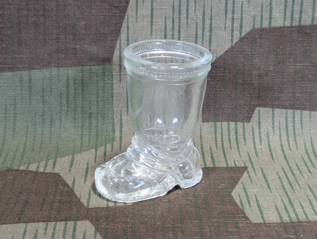 Vintage German glass shot glasses in the shape of a jackboot. The price is for one. All are in similar condition. They just need a cleaning.