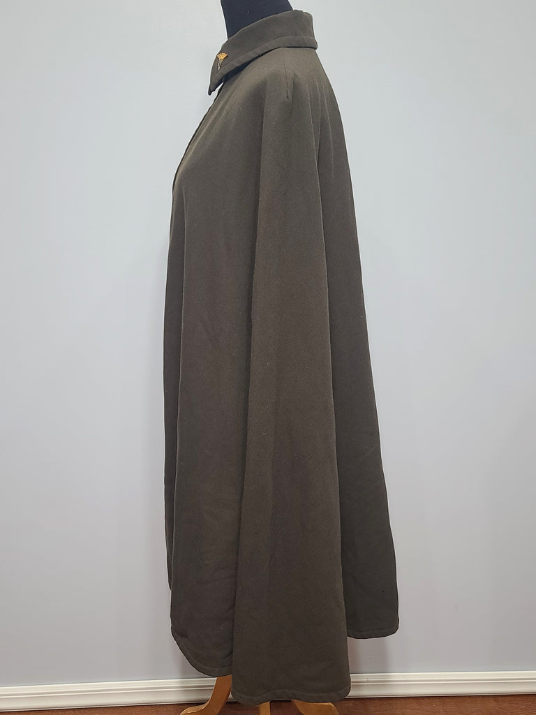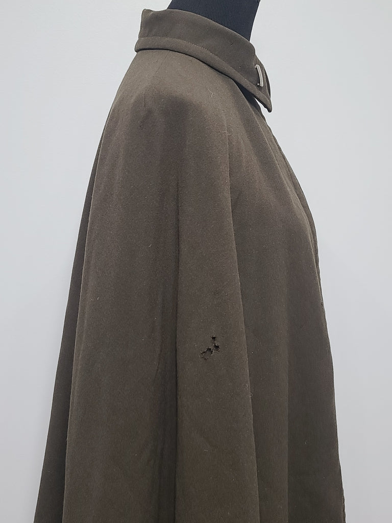 Vintage WWII US Army nurse (ANC) wool OD green cape. Size Medium label. Dated 1943.