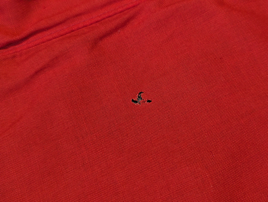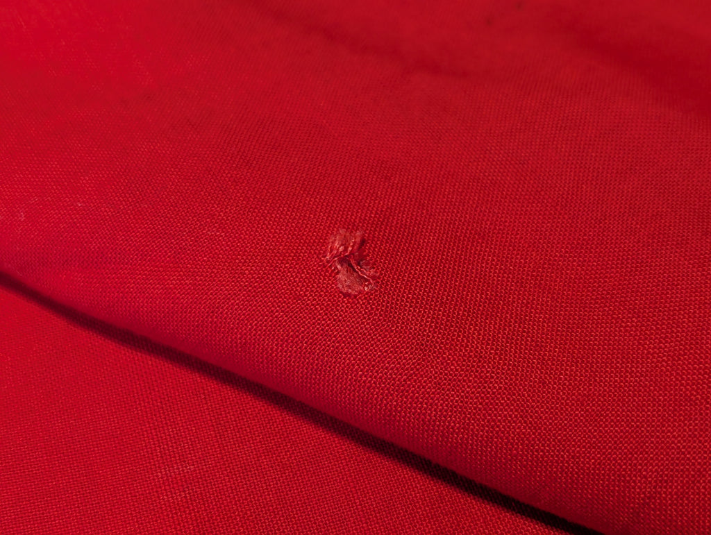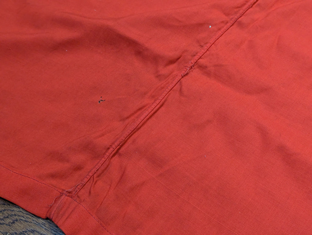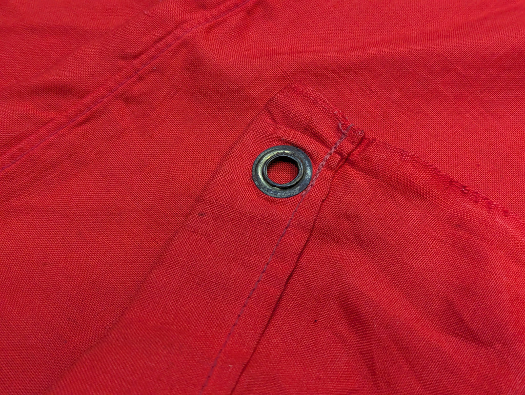Very nice original example of the vehicle identification flag which has a Balkenkreuz rather than a swastika. It is one sided as it is only meant to be stretched over a vehicle, so that friendly aircraft will know not to bomb or strafe you. Typically seen in original photos on the engine deck or turret of panzers. It has metal gromets, one each corner. The grommets look brass but they are a coated steel. The Balkenkreuz is screen printed on white which is sewn to the red background.  This is a very nice example with just a few small stains and holes. The color is still quite vibrant.
