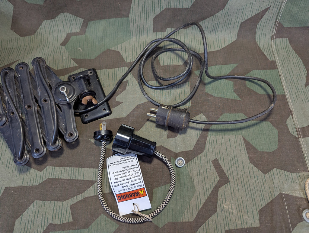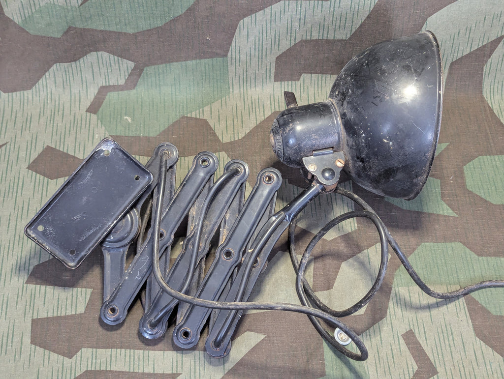 All original Kaiser Ideal wall mounted extendable work lamp in good working order. It is a little dirty, but it even still has its original cord and plug which are both in good condition which is rather rare. These are fantastic lights and are highly collectible. This one would be good to simply do a light cleaning and leave as is. I have included one of our US to DE plug adapters, so you can retain the original plug and still use the lamp.