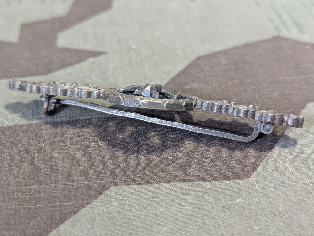 The Frontflugspange is unmarked with wear to the finish and a small crack in the wreath portion of the badge. Its condition matches the tunic very nicely.