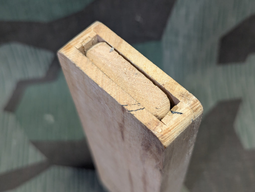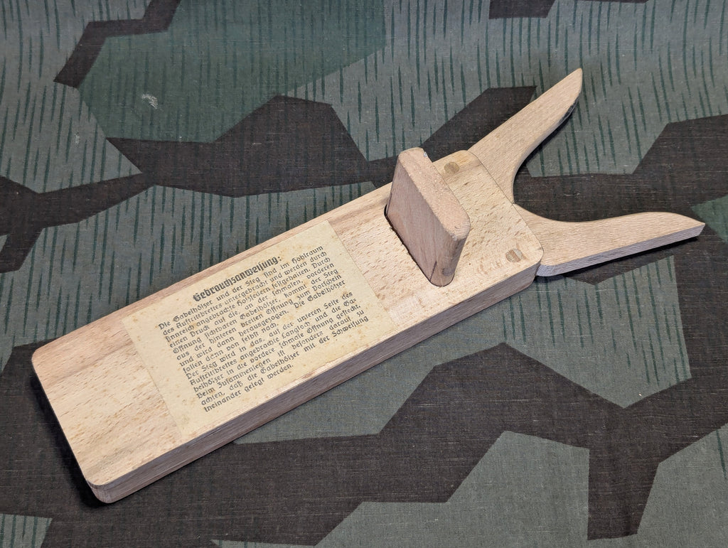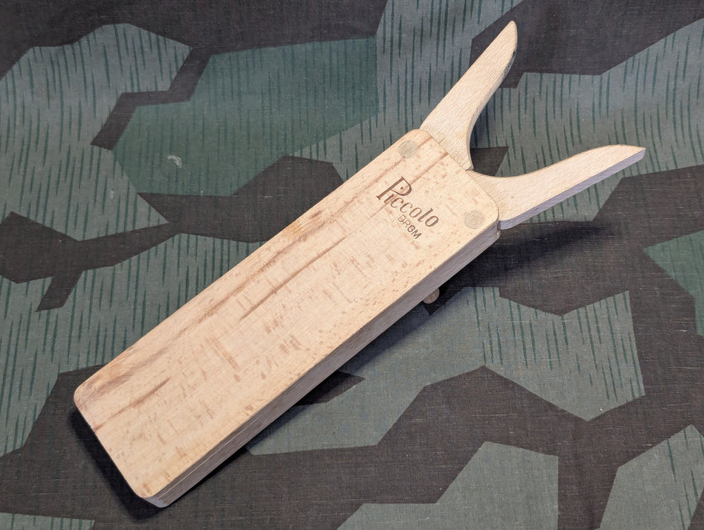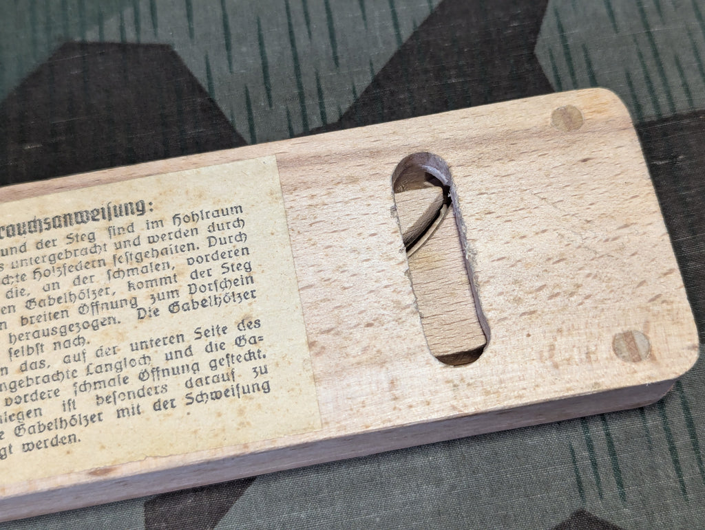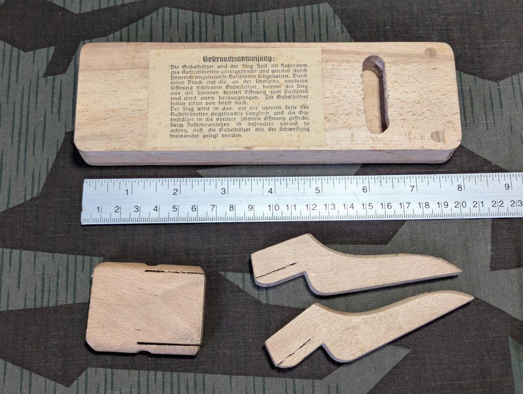 Original German collapsible boot puller in very good complete condition. Piccolo DRGM. The pieces are stored inside the main body and its held in place by spring pressure provided by thin slits in various wood parts. A very interesting design and an elegant way to do it.