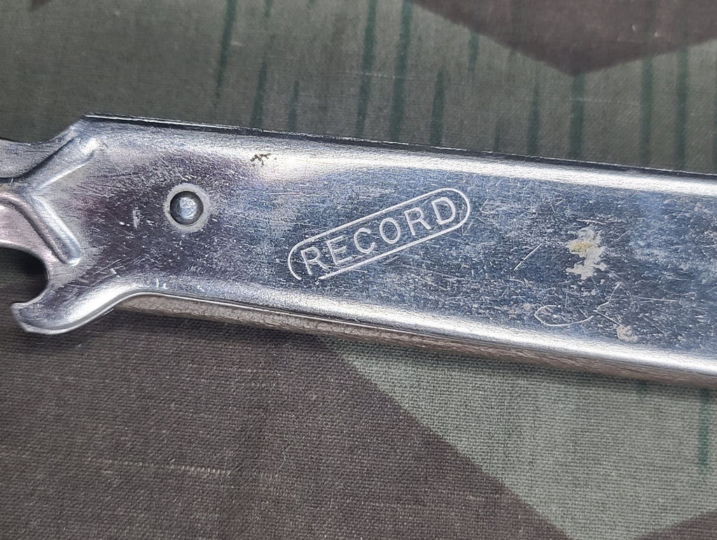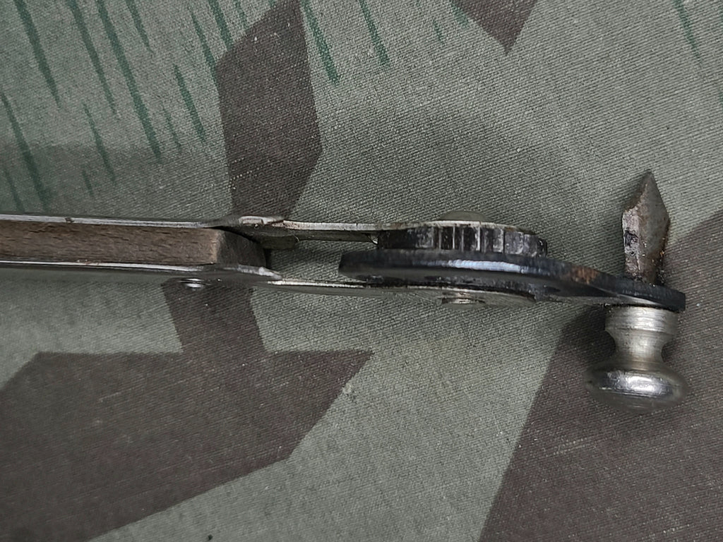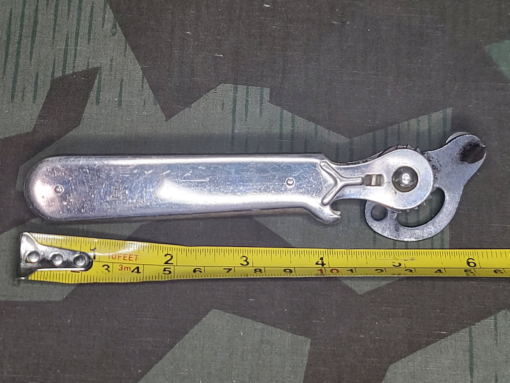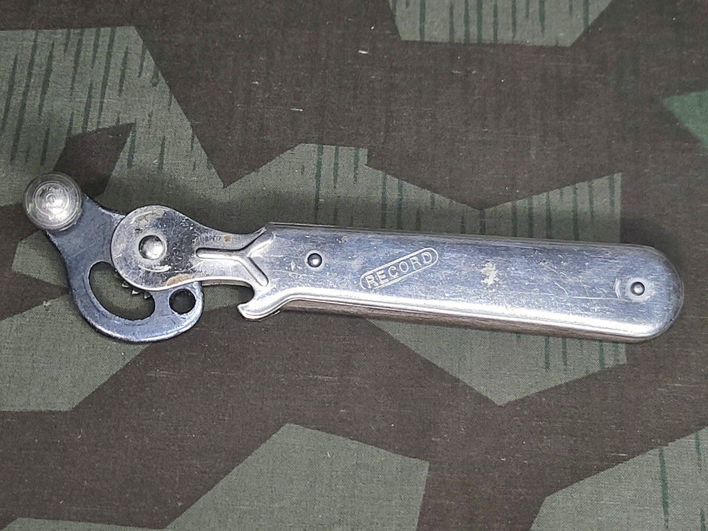 Original German Record can opener that works completely different than American types. You force the cutter through the can, then drag it around the edge. This design was popular in Germany for a long time. It is in decent condition with some rust and wear.
