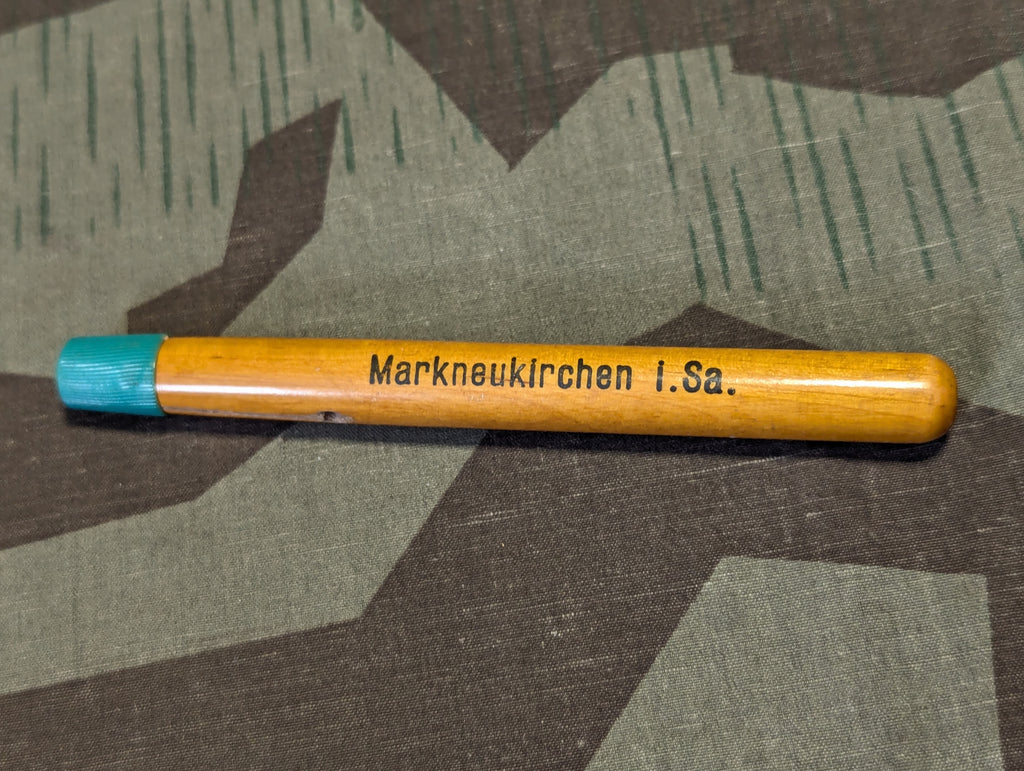 Period Allegemeine Deustche Credit-Anstalt wooden advertising pencil holder / extender. This allows you to more easily use every last bit of your pencil. It can hold even tiny stubs of pencils. Overall good condition.