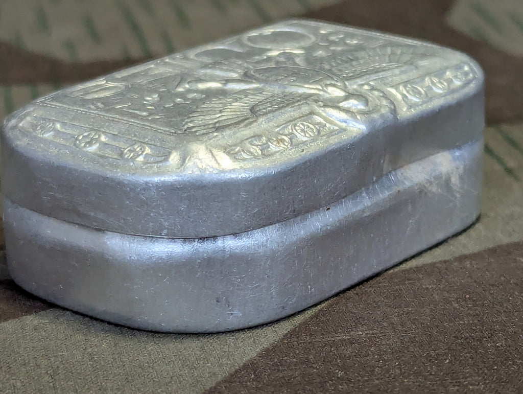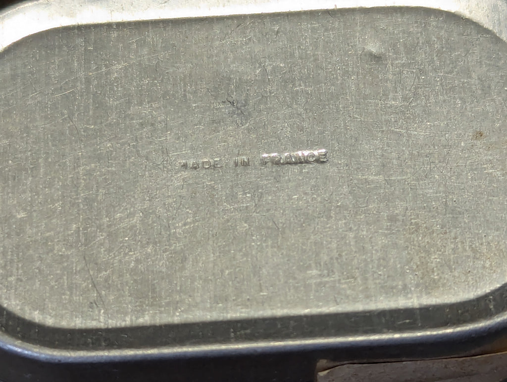 Original Quies Paris French wax ear plugs in the original aluminum tin. The ear plugs are basically the same as the German ones, wax balls covered in cotton fluff so they don't clump together. The tin has a nice art deco Egyptian theme. Fairly good condition with some wear and light dents.