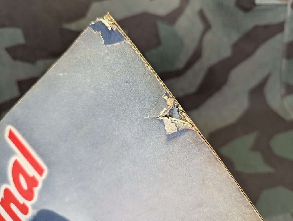 Original March 2 1942 Signal magazine in German. Another nice issue of Signal with a number of good color pictures and lots of good ads. OK condition. Some tearing and a gouge on one side that goes into several pages. The color centerfold is actually still attached, which seems to be a rare treat. There isn't anything particularly earthshattering in this issue but I did find many of the pictures to be very good. The color photos, although there aren't many, are very nice.