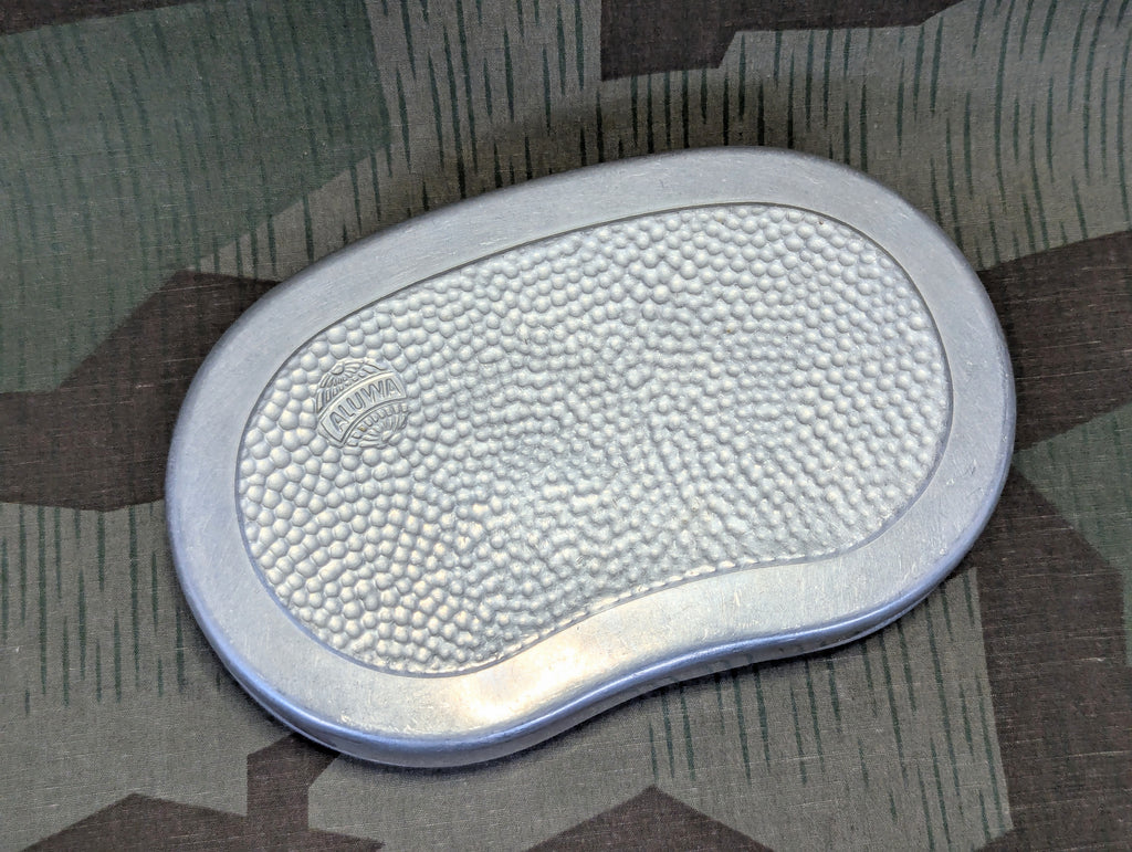 German Aluwa brand aluminum bread/sandwich tin in good condition. A nice bread bag stuffer to keep your sandwich safe. Aluwa also made canteens and mess kits. These were an important part of everyday life for Germans, so it is no wonder they found their way to the front lines as well. Bread tins are frequently found by battlefield diggers across Europe and Russia. They were even being produced as early as WWI.