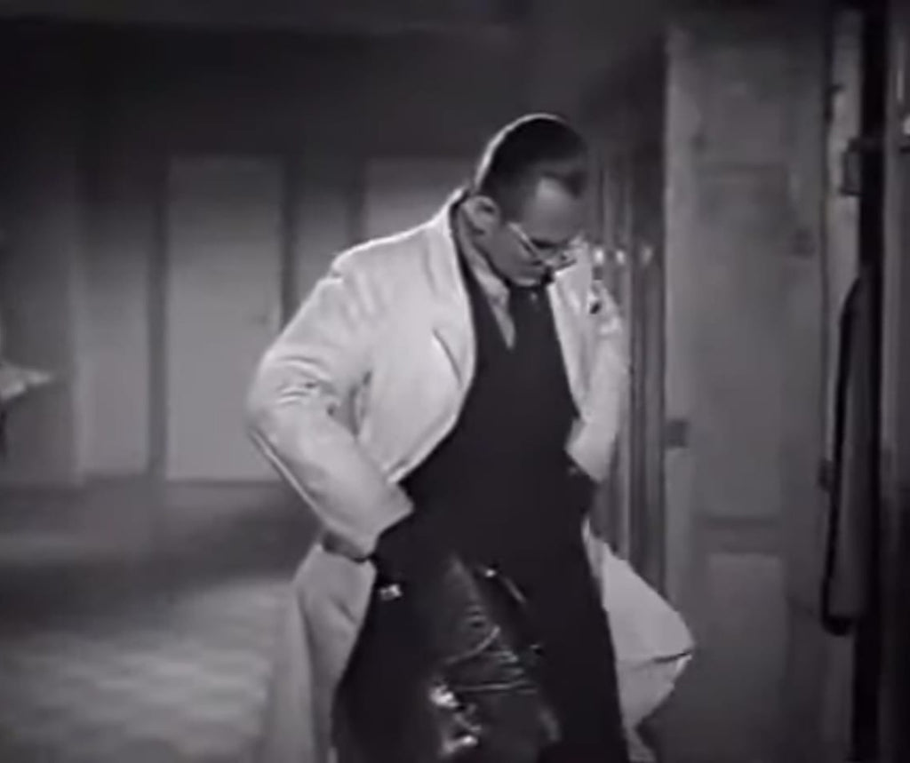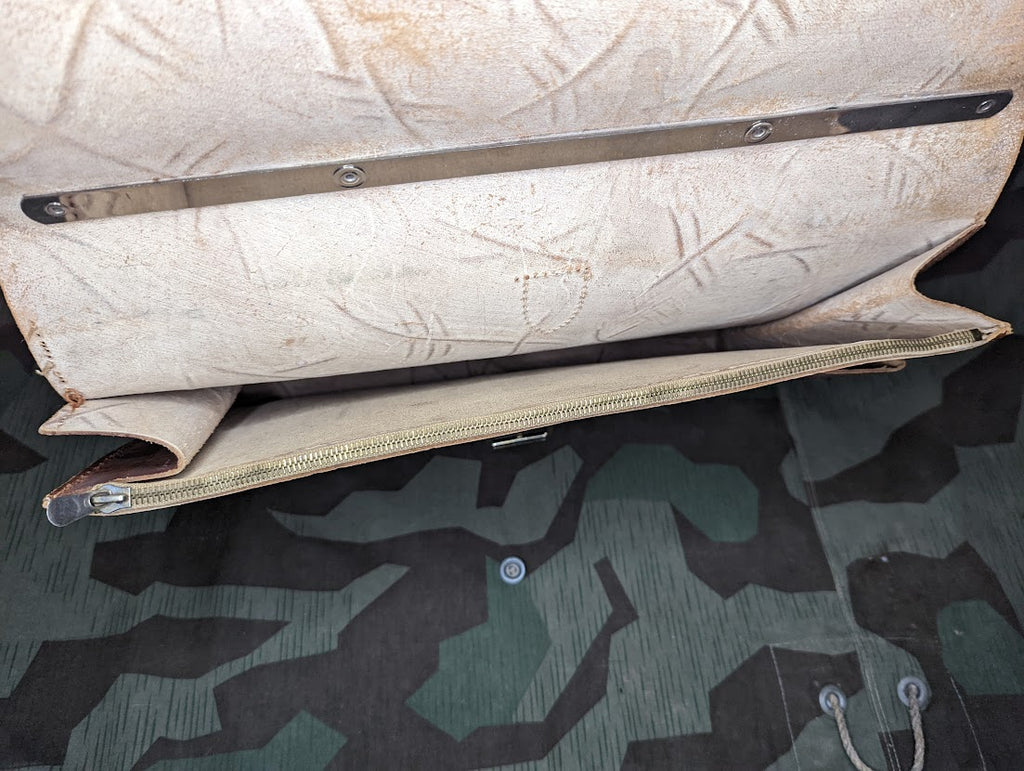 Period German briefcase in reasonably good, usable condition. This style of briefcase became popular in the 30's and began replacing the older designs. After the war, the style became fairly standard. This veiny pattern leather is more typical of earlier cases although many patterns were used. The stitching is good around most of the briefcase with about a 1in. long separation at the top on one side. This wouldn't effect the function. The photo is a still from a 1936 German film about espionage. - ← Previous Product Next Product →