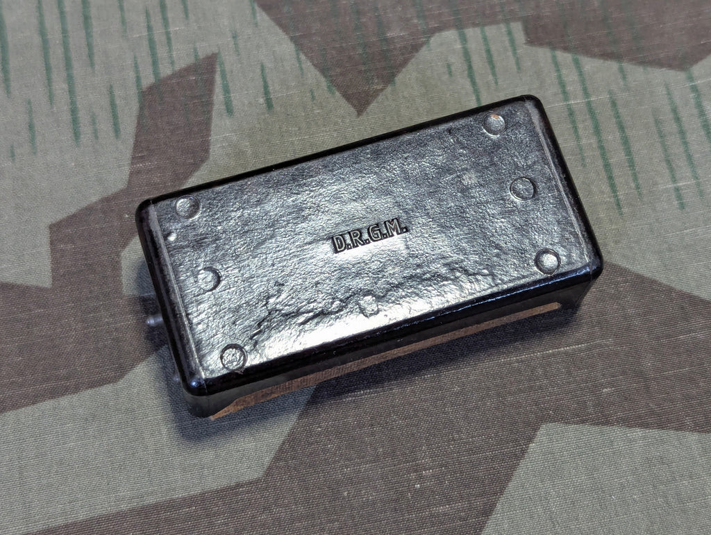 Nice little black Bakelite cigarette hand rolling machine. It is a bit dirty, but it should still function. The only marking is D.R.G.M. (Deutsches Reichs-Gebrauchsmuster - a version of a patent marking).