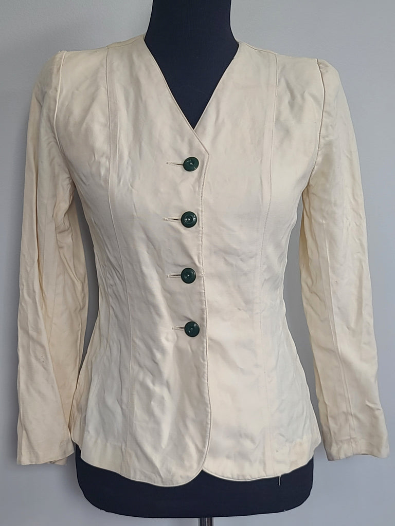 Vintage WWII white US Navy WAVES jacket that has been civilianized.