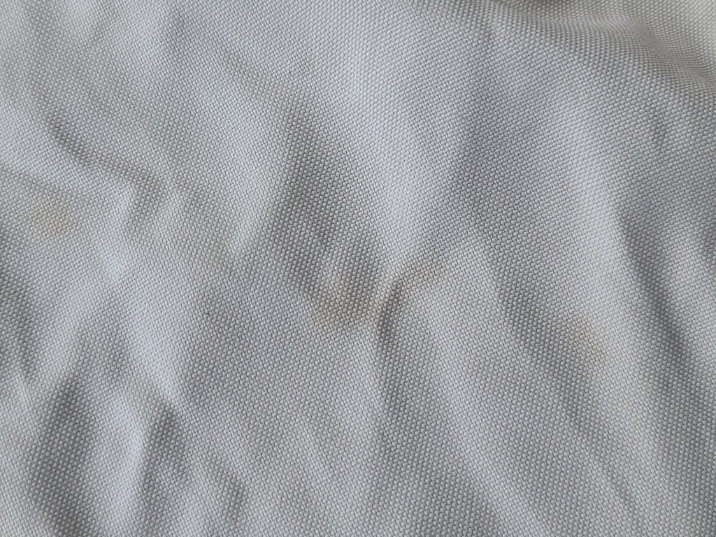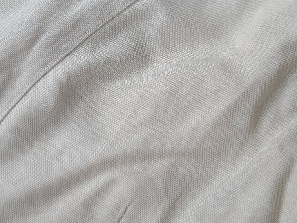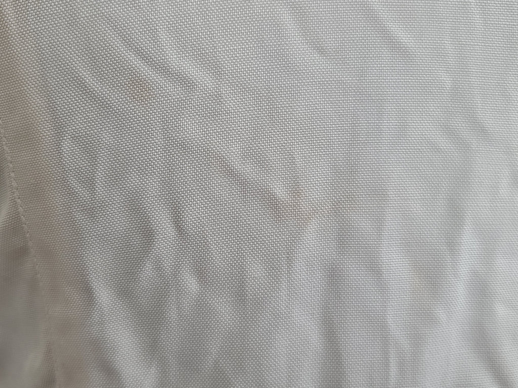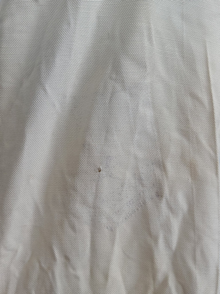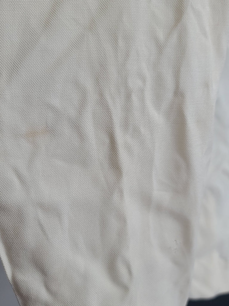 AS-IS condition with a lot of wear. There are a lot of light stains throughout (they are almost too light to show up in the photos). You can see residue from where the rank patch was sewn onto the sleeve. Some small holes on the sleeves and on the shoulders. Discoloration on the shoulders and down the sleeves. Some pulls in the material.