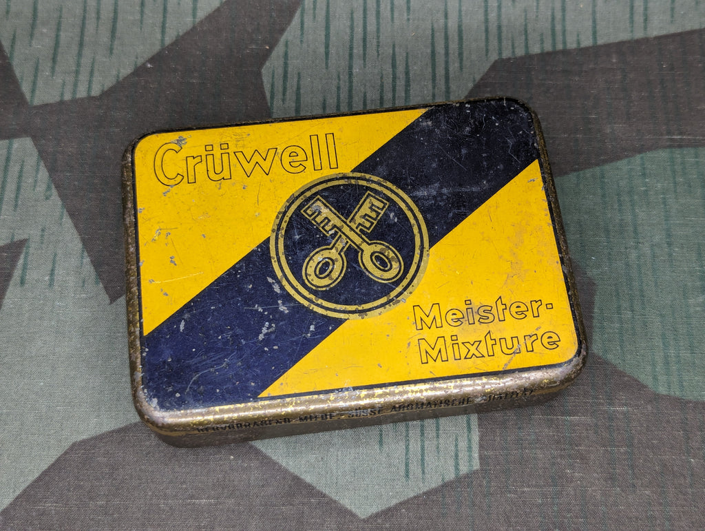 German Crüwell Meister-Mixture pipe tobacco tin. Lightly worn and dented.