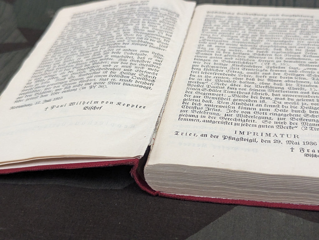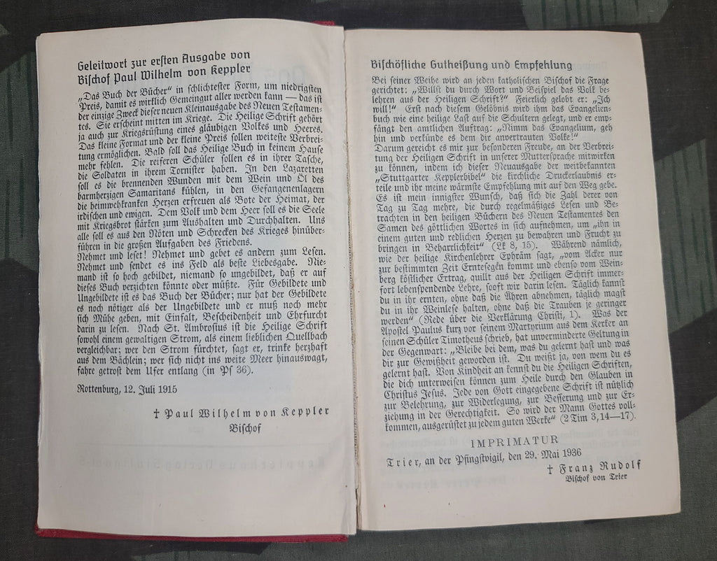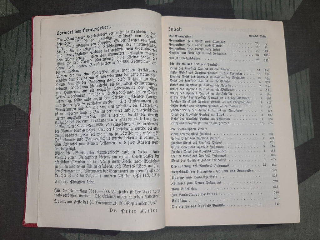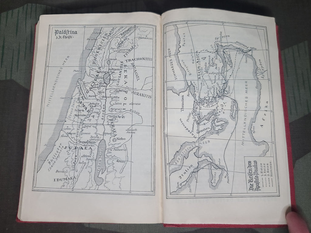 Decent condition original New Testament Bible from 1938 with an inscription from 1940. Some wear on the spine. - ← Previous Product Next Product →