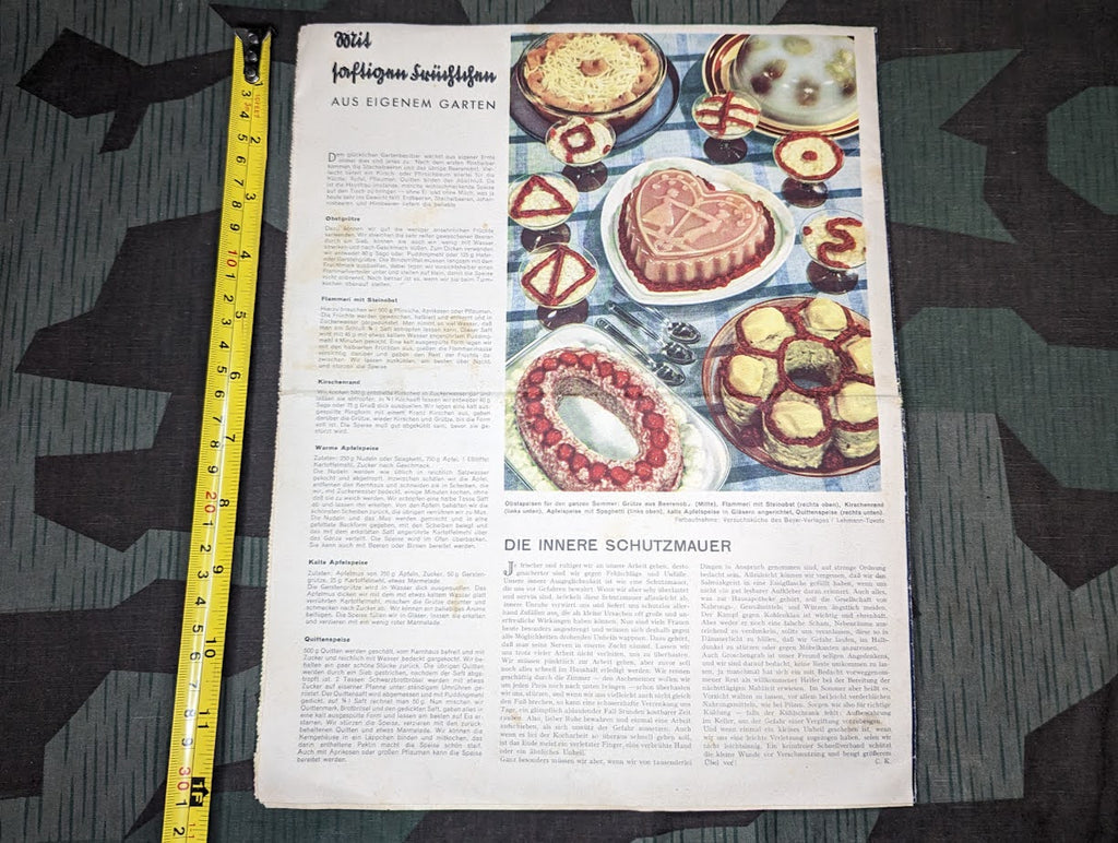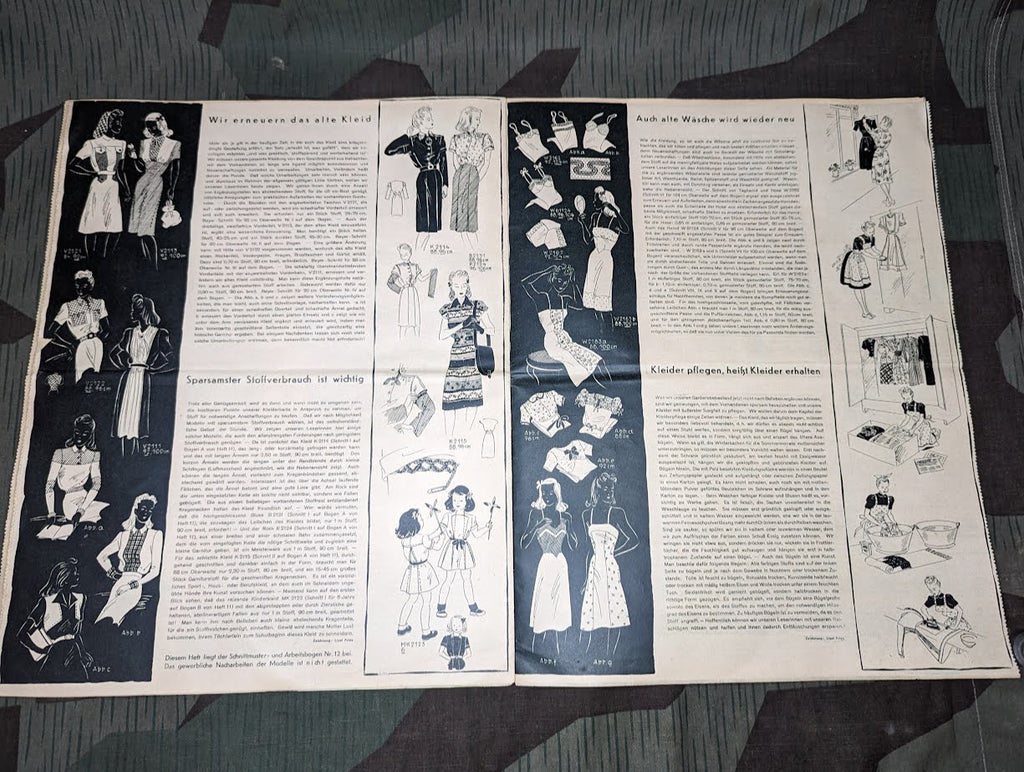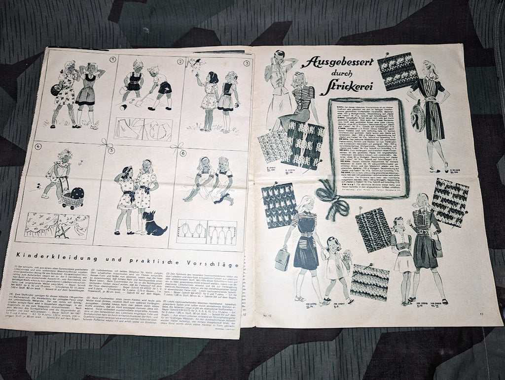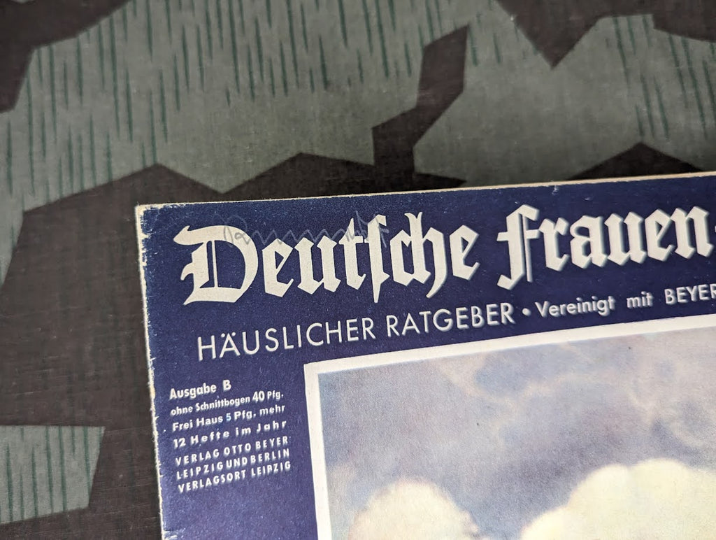 Original Deutsche Frauen Zeitung Heft 12 1942 / 1943 Juni. Decent condition with some general wear and age. Some stains and there is a fold in the center. Some pages have come loose, but it seems to be complete. These types of magazines provide a very interesting look at day to day life in the Reich.