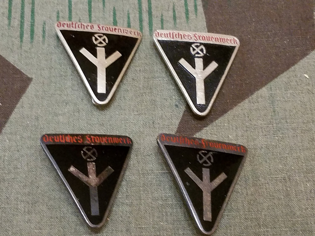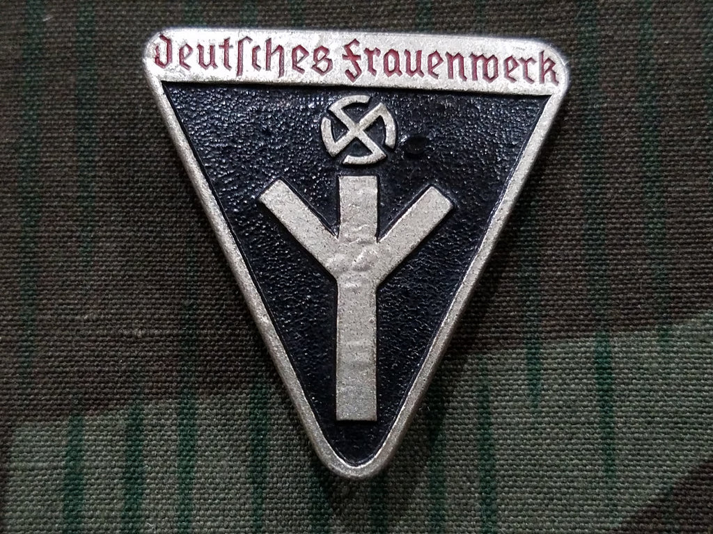 Original Deutsches Frauenwerk pins. The price is for one pin. We have several pins and they do vary slightly from one another as they are all from different manufacturers. All pins are in good condition, similar to the photos. The DFW was one of only 2 legally operating women's organizations in Germany. This is a membership badge for the organization. It measures about 1 1/4" tall and 1 1/8" wide at the top. - ← Previous Product Next Product →