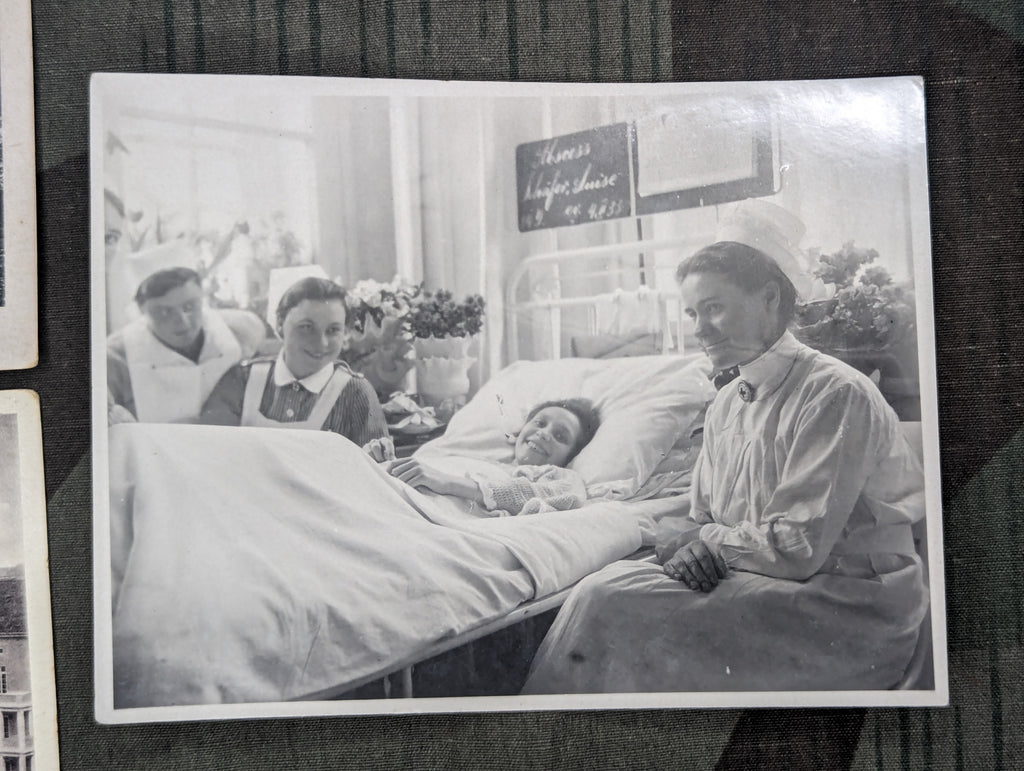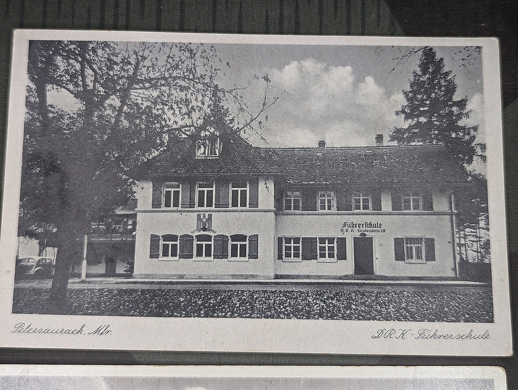 Two DRK Postcards and one photo. One of the postcards features a DRK Führerschule and the other shows a hospital in Würzburg. One postcard is used and was mailed Oct 31 1941. All pieces are in fairly good condition. - ← Previous Product Next Product →