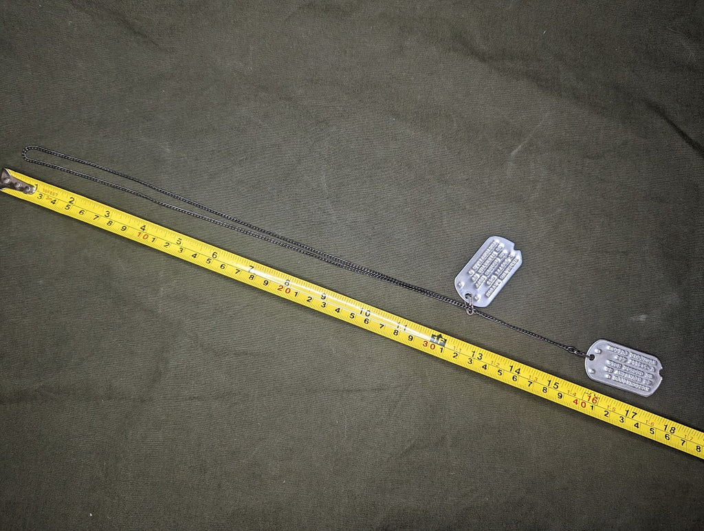 Original WWII early war next of kin WAC dog tag set on chain for Madeline Layton. Good condition. The prefix A is for enlisted soldiers.