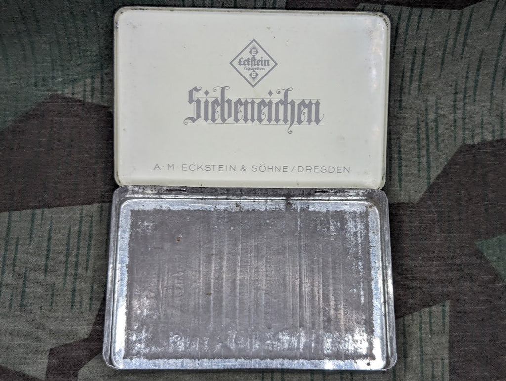 Nice pre-war Eckstein Siebeneichen cigarette tin in fairly good condition. Originally held 25 cigarettes. Great to refill and use at events. - ← Previous Product Next Product →