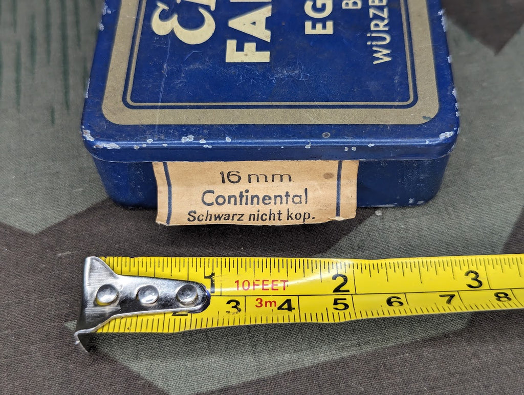 Em-We Farbband nice double wide typewriter ribbon container. There is a little paper label on one side which I believe was from someone using this to store some small parts. - ← Previous Product Next Product →