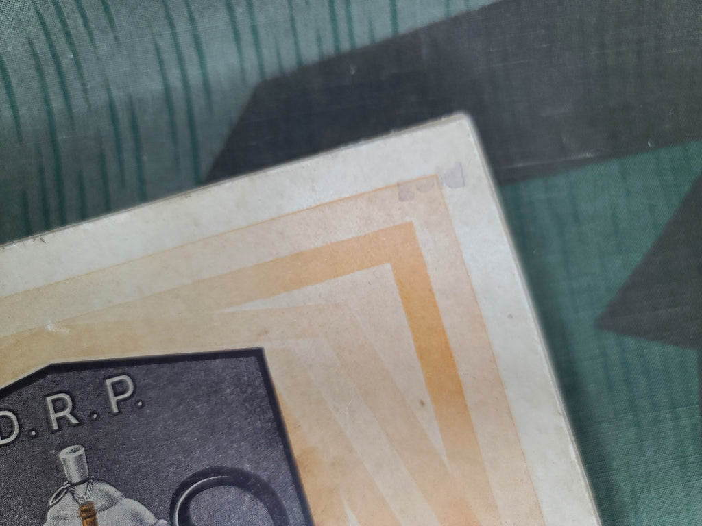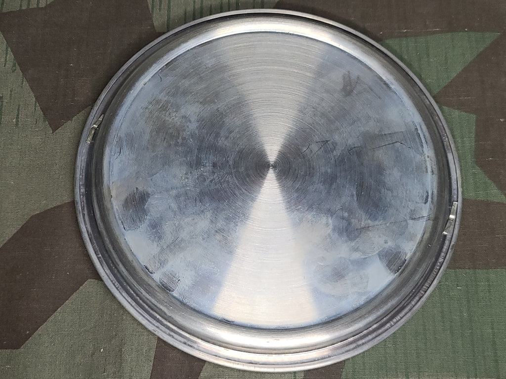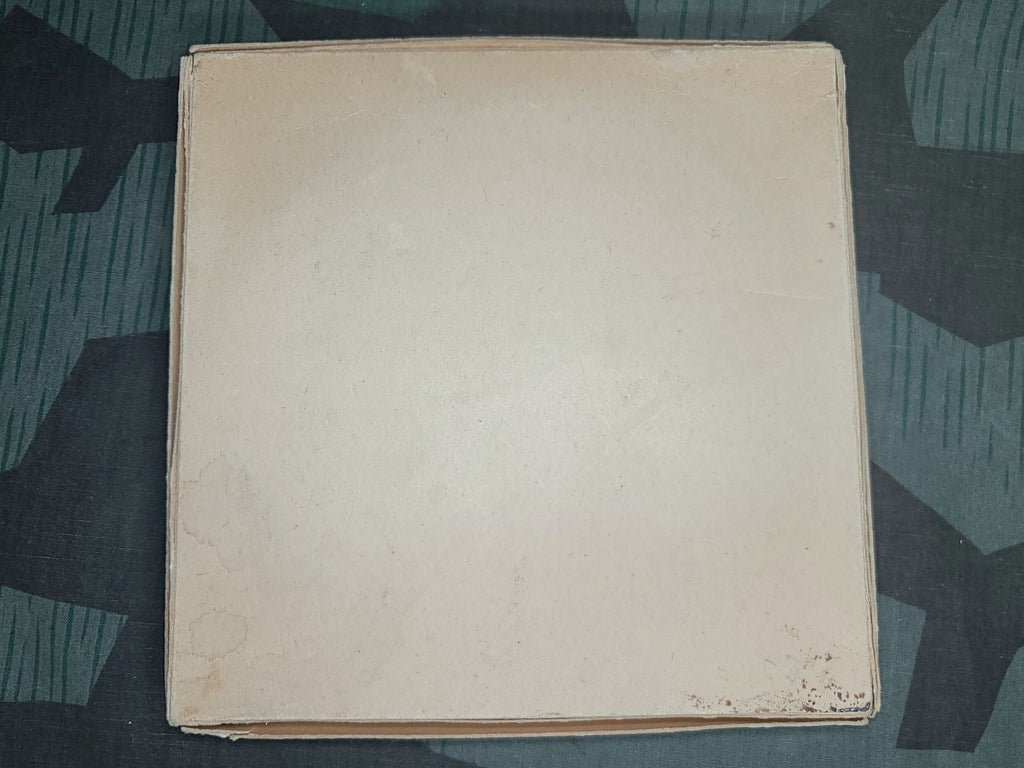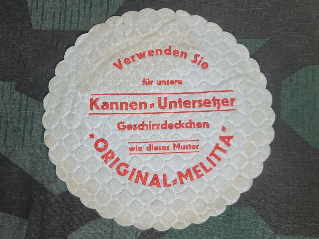 This one is new old stock, unused, with its original box. The box shows some very light wear. The coaster itself is basically like new. There is another disposable coaster that is an advertisement for Melitta products. The disposable coaster shows some wear and discoloration. I assume this piece would sit on the yellow felt to protect it from spills.