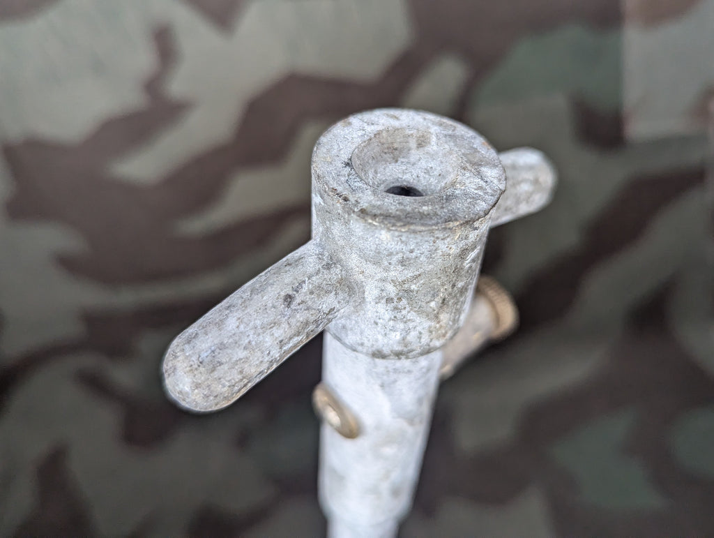 We spoke with a Wehrmacht veteran at an event that recalled using the stakes and he told us that amongst the signals group, it was common practice to urinate on the grounding stake to better ground it. The stakes are hollow with a small funnel on top designed to conduct water through the stake and into the ground for just that purpose, though I am sure the designer originally intended water, rather than urine, to be used.