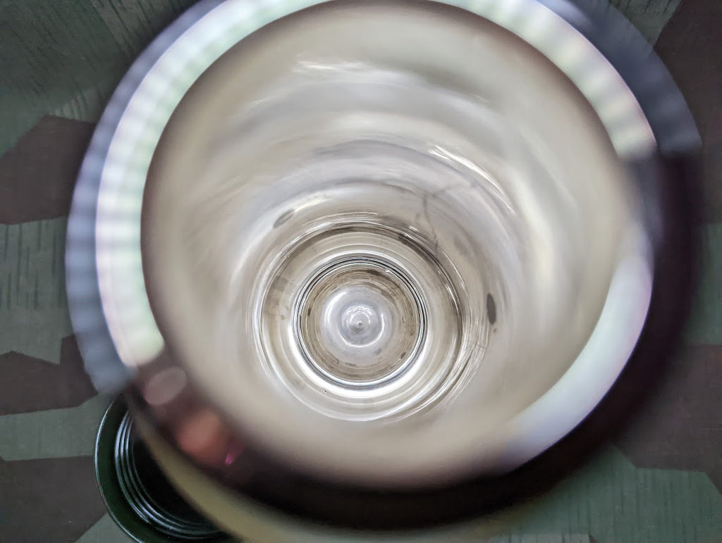 Nice post war made thermos which is essentially the same as the Gebirgsjäger thermos. There would have been 2 such thermoses stored in the two side pockets of the rucksack, yes, those big tall pockets are designed to fit these. This one is in good condition but it is missing the cork stopper. You may be able to find a replacement at Ace hardware or a similar store. Very nice green Bakelite cup. - ← Previous Product Next Product →