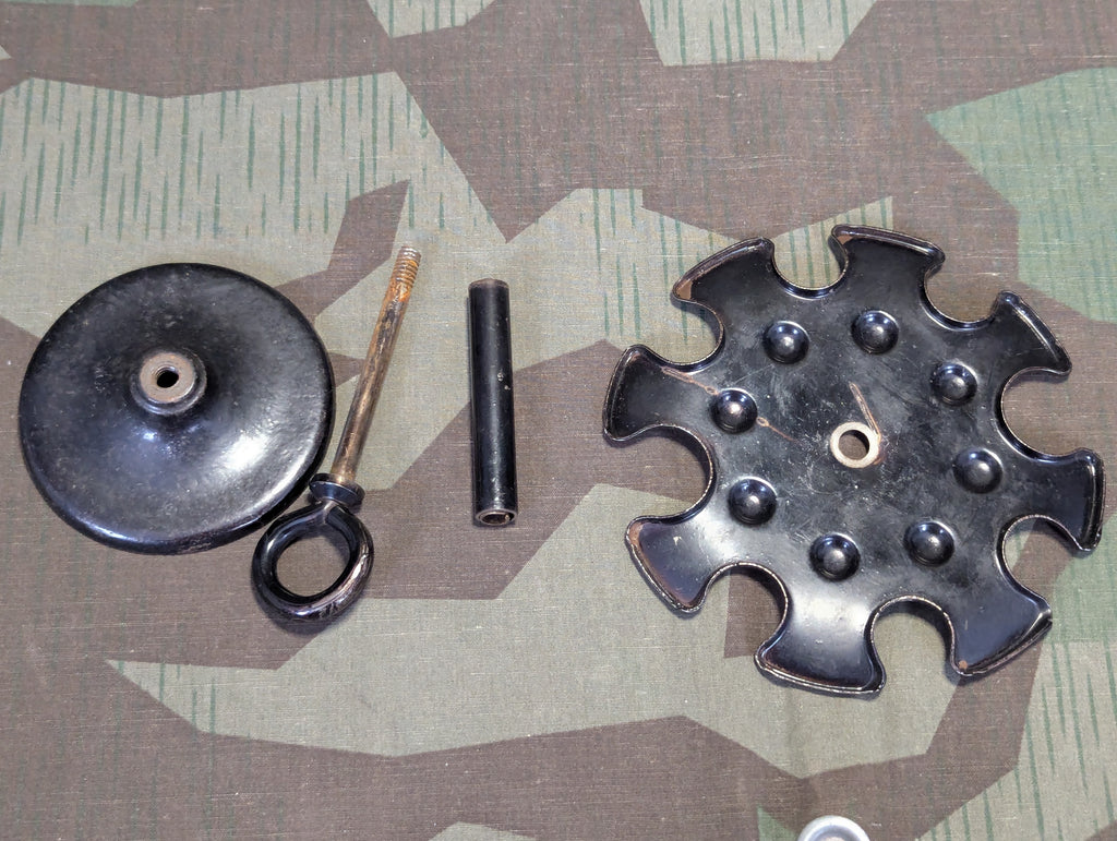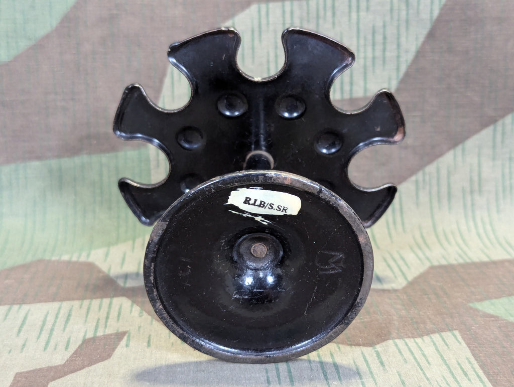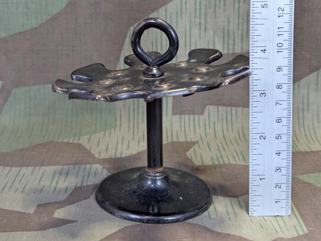 Period German stamp holder for 8 stamps. It is in fairly good condition with light wear. There is a M brand marking and R.L.B./S.SR. This could possibly stand for Reichsluftschutzbund for a specific region but I can not be sure of that. It disassembles easily for transport. These actually come up a lot in original military photos in office like environments, both near and well behind the front lines.