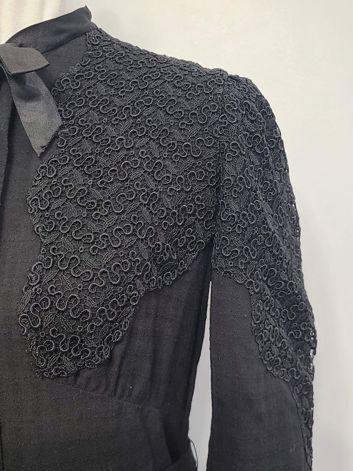 Vintage 1930s / 1940s German black dress with lace around the top.
