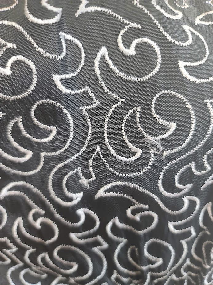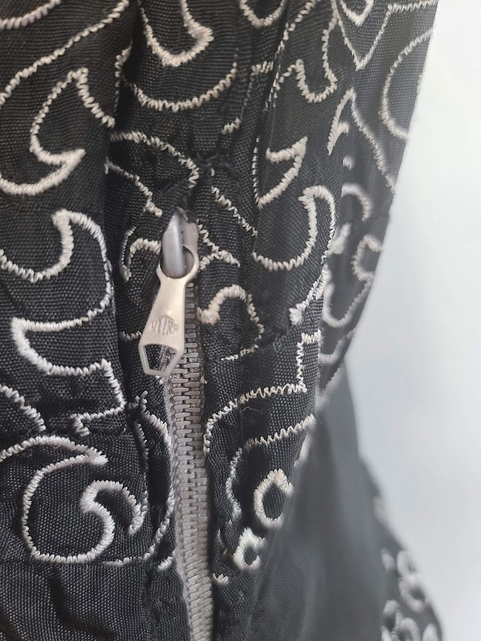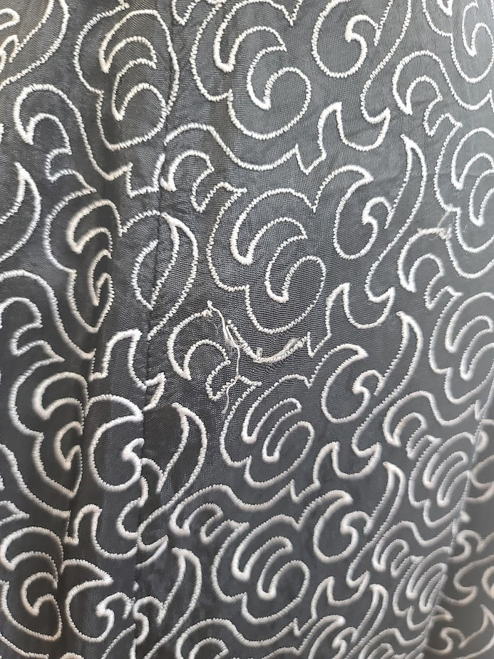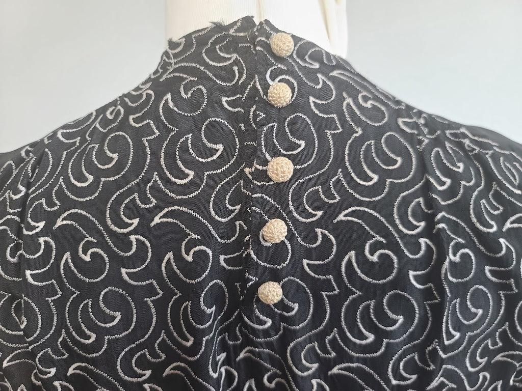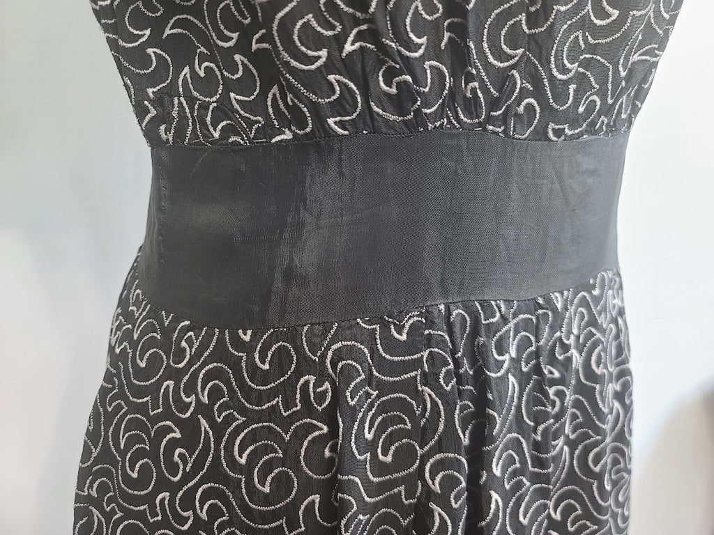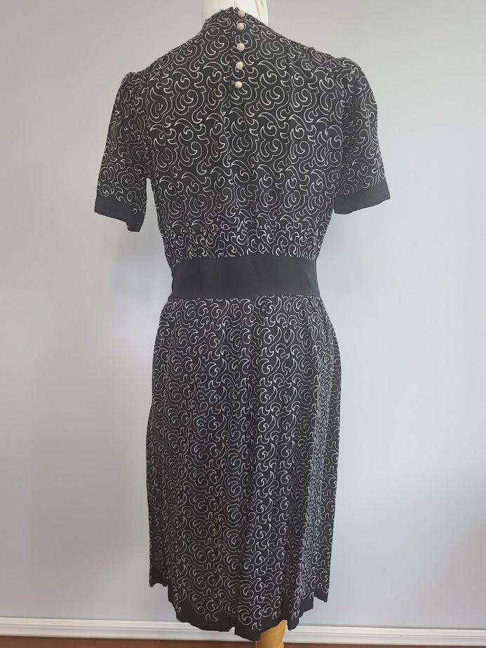 Vintage 1930s / 1940s black dress with white swirl designs, brought back from Germany.