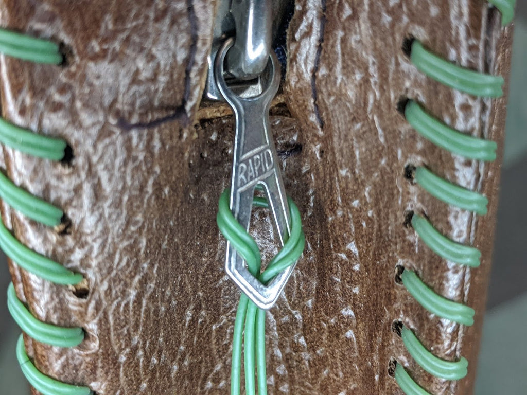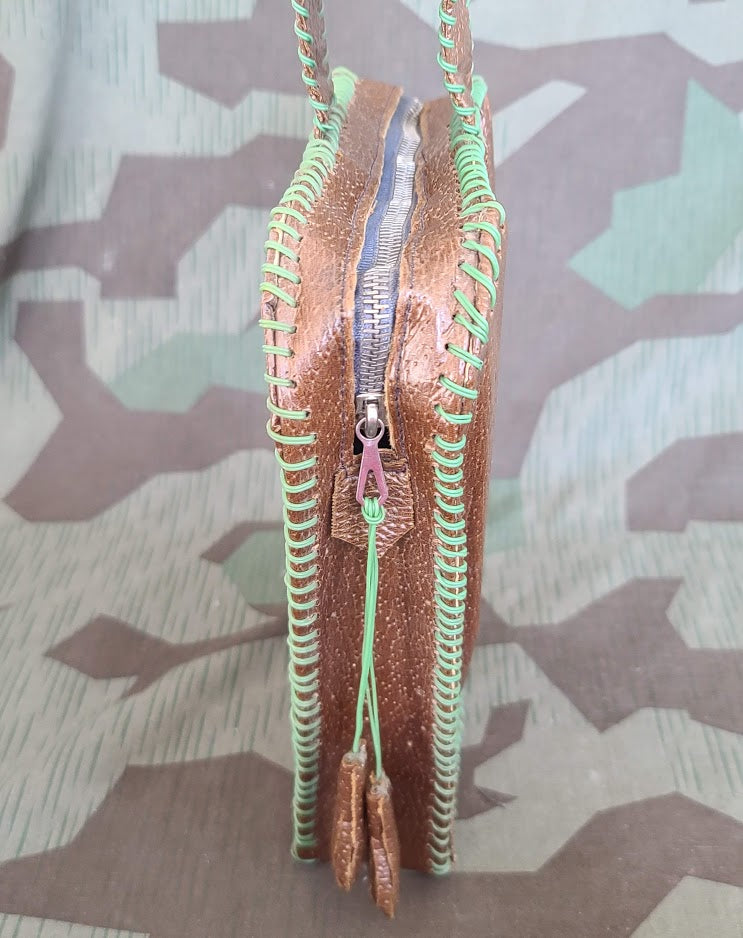 Vintage 1940s German brown handbag with green trim. The bag has a nice tracht look to it. The outside is in good shape but the lining on the inside is tearing out. The zipper can be a little tricky to open and close. - ← Previous Product Next Product →